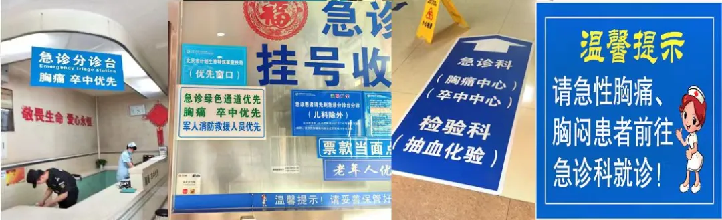 急诊分诊台、挂号处、卒中诊室、药房等均有“胸痛卒中优先” 标识
