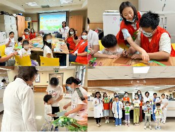 “亲爱的小朋友,祝你向阳而生、茁壮成长!”志愿者们亲手写下节日祝福,送给病房里的小朋友,剪裁拼贴间,志愿者们爱意倾注;作品赠送时,患儿家庭笑意盈盈,勇气和爱以艺术疗愈的形式心手相传,丰富患儿及家庭的住院生活与艺术文化氛围。
