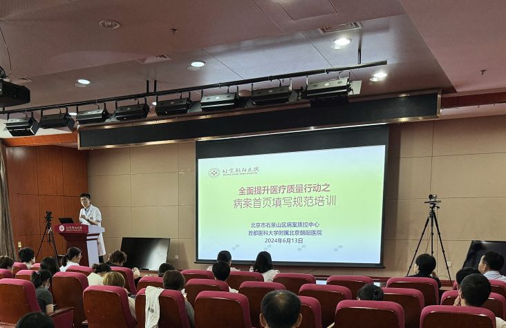 6月13日下午,首都医科大学附属北京朝阳医院(以下简称朝阳医院)石景山院区作为石景山区病案中心主任委员单位,在门诊四层报告厅举办以“提升医疗质量安全,提高病案首页填报质量” 为主题的全区病案质控培训会。本次培训吸引来自全区各级各类医疗机构的医务处、质控办、病案科等部门管理者、工作人员,以及医院临床医生等共计一百余人参加培训。