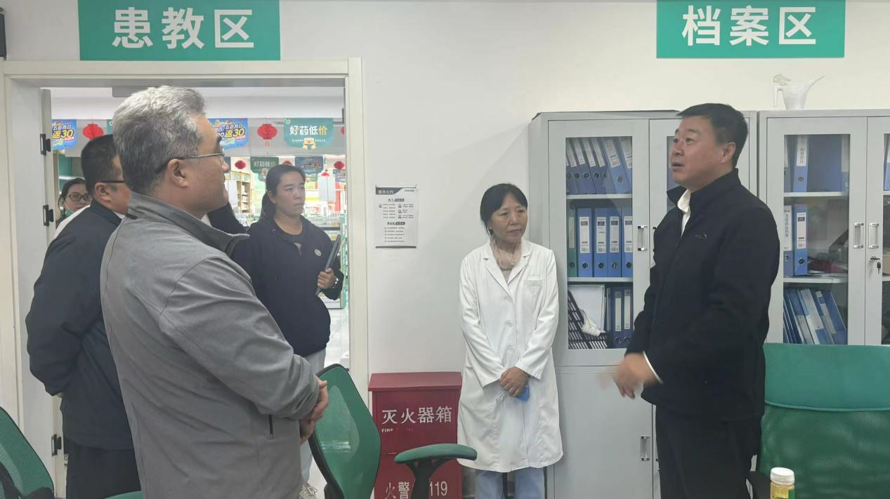 马继业局长、李敬伟总会计师在定点药店了解“双通道”落实情况
