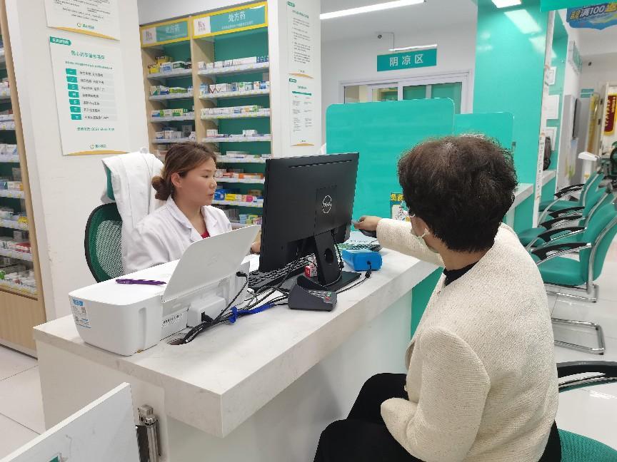 侯丽娟科长在定点药店进行“双通道”处方医保结算