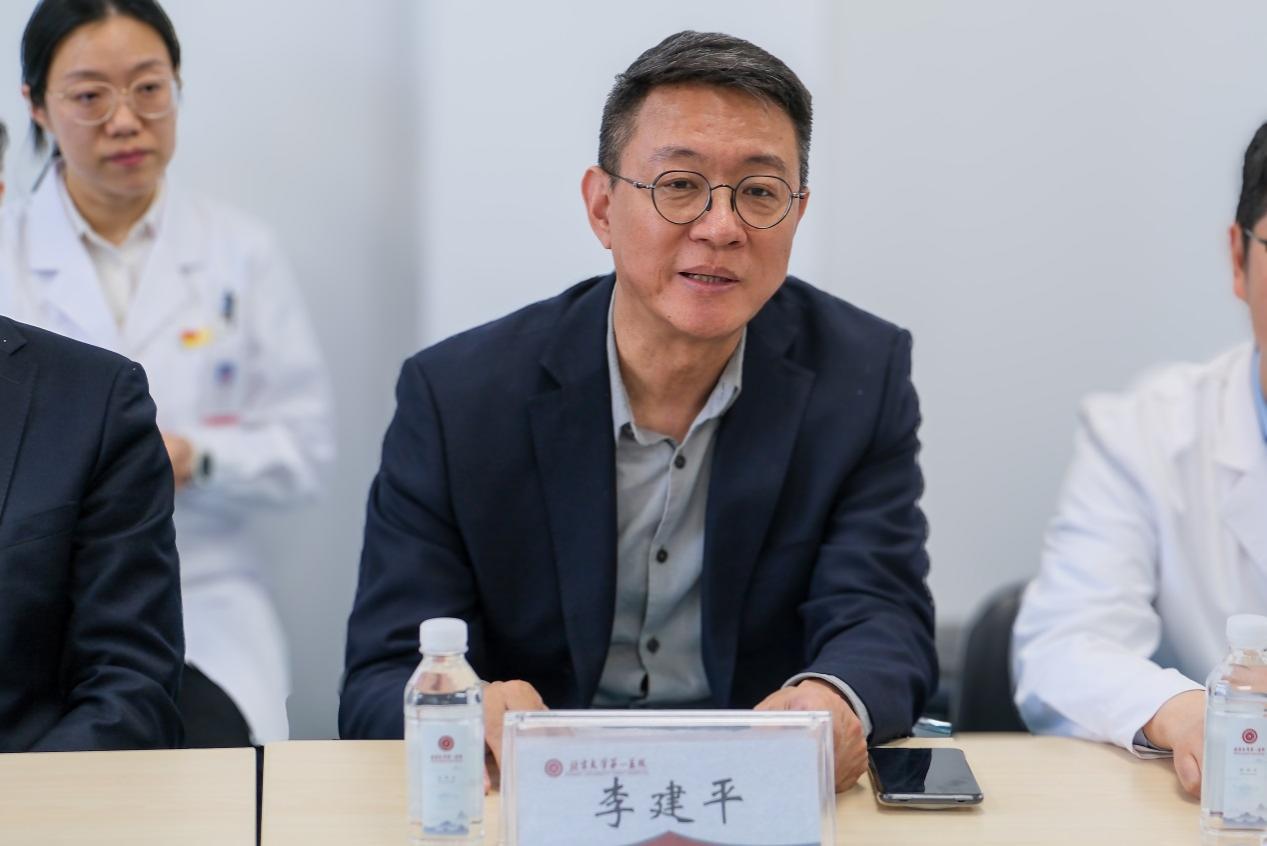 李建平副院长对肖非院长一行来访表示欢迎。他表示,北大医院作为“国家队”医院,认真贯彻党中央关于援疆工作的重大决策部署,积极支持新疆卫生健康事业建设发展。喀什地区第一人民医院作为“立足南疆,面向全疆,服务一带一路”的国家区域医疗中心建设单位,相信双方未来可以发挥各自学科优势,深入开展合作交流。他简要介绍了北大医院的百年历史传承、学科建设情况以及未来发展规划,并表示未来进一步加强学科间的交流对接,建立紧密合作关系,充分分享双方的诊疗经验和国家区域医疗中心建设经验,促进学科学术水平提升,为新疆各族人民群众提供坚实医疗保障。