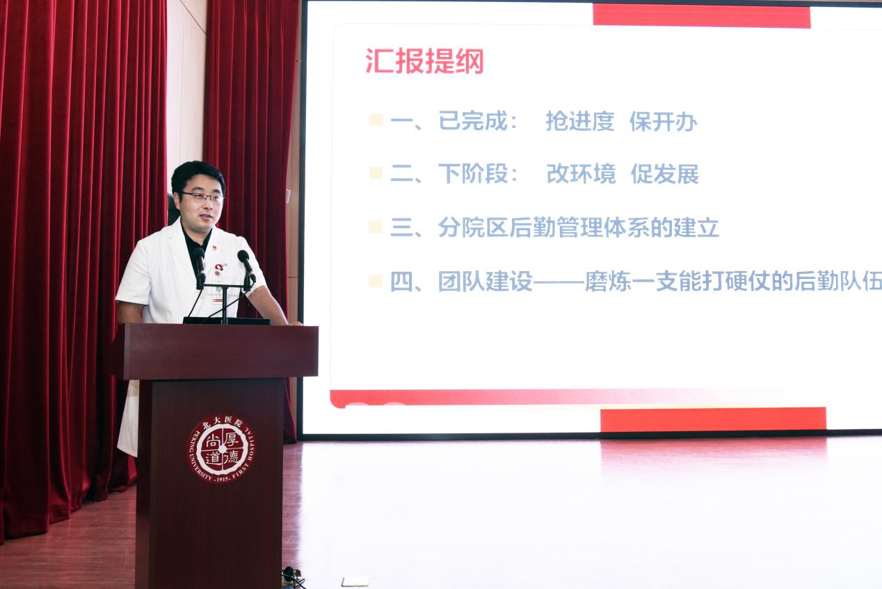 孙璐以“建机制、保开办,磨炼一支能打硬仗的后勤队伍”为主题,着重总结了大兴院区启用半年以来综合保障相关工作。从“抢进度,保开办”的件件大事到“改环境,促发展”的创新理念,希望能够用心用情将大兴院区建成“年轻人来了就不想走的医院”。院区将致力于实现资产的信息化管理,从内控管理的高度进一步实现资源的合理调配;分院区后勤管理体系的建立实现了对内保障与对外对接的双重功能,通过着重培养年轻人服务于临床的意识,实现个人成长与适应现代化后勤管理模式的双重效应,为医院发展提供有力保障。