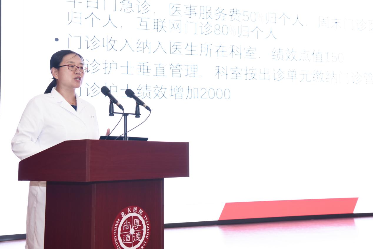 运营管理处处长韩晓宁分享了一院多区绩效管理模式的探索及反思,为绩效管理体系的完善提供了宝贵建议。她指出,推动落实护士垂直化管理和深化“全院一张床”可以确保绩效高效落实。