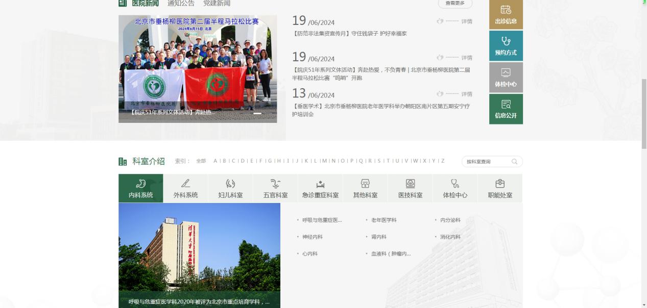 北京市垂杨柳医院门户网站于2021年5月改版上线,以“强化质量安全,提升患者体验”为原则,持续改进,优化官网页面,在设计上采用扁平化风格,各功能模块分区合理明晰,栏目结构更加直观,内容精简易懂,可以为广大网友提供更加便捷的查询服务,带给用户良好的操作体验。
