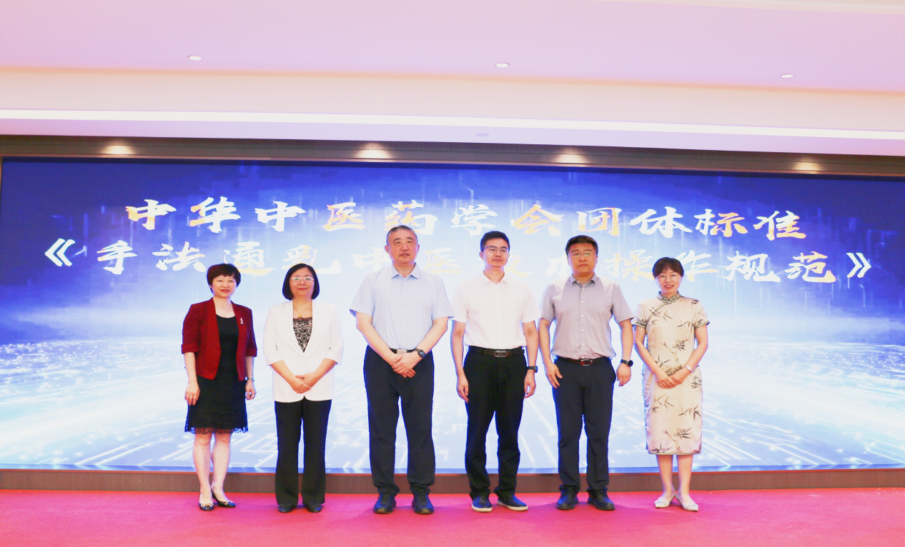 会上,由中华中医药学会标准化办公室主任苏祥飞宣读了《手法通乳中医技术操作规范》团体标准发布公告。并隆重举行了由北京中医药大学东方医院护理部唐玲主任团队牵头编制的中华中医药学会团体标准《手法通乳中医技术操作规范》发布仪式。