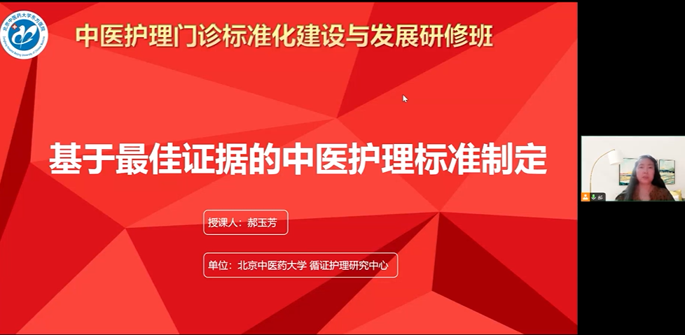 北京中医药大学国际循证中医药研究院副院长郝玉芳以“基于最佳证据的中医护理标准的制定”为题进行专题讲座,介绍了循证护理的概述、中医护理标准的现状和中医临床研究证据分级参考建议的发展,并以中医护理方案的优化等具体循证研究实例详细介绍了标准化的研制过程。