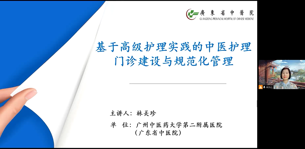 广东省中医院护理部主任林美珍以“基于高级护理实践的护理门诊建设与规范化管理”为题进行专题讲座,介绍了中医护理门诊从人才、技术、管理方面建立了一套完整、科学、规范的全闭环中医护理门诊建设体系,提出在工作中要挖掘中医护理门诊建设内涵,体现人文视角和专业价值。