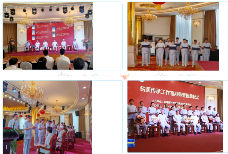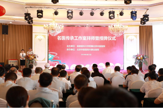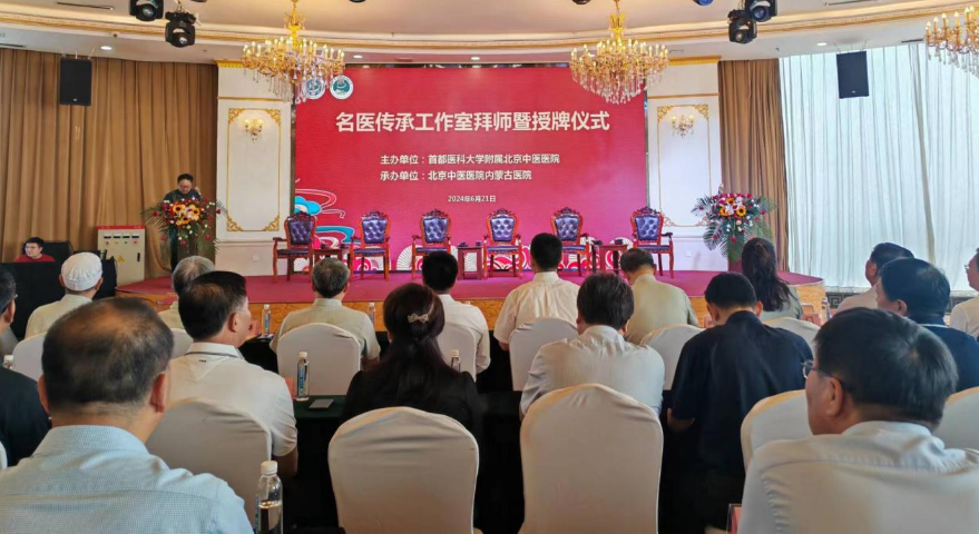 北京中医医院内蒙古医院焦银萍、刘健、刘红霞、王粟实等13名医师按照中国传统中医学徒拜师礼节,分别向刘清泉、张声生、佘继林、祝肇刚、王国玮、刘红旭6位名老中医专家呈拜师帖、奉茶、行礼、献花,结为师徒关系,开启跟师学习生涯,随后举行了北京中医医院内蒙古医院名医传承工作室授牌仪式。