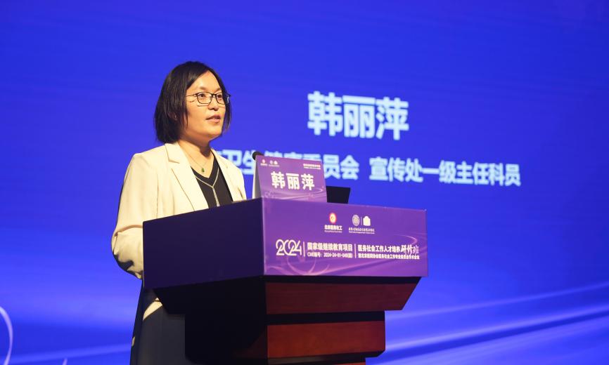 北京市卫生健康委员会宣传处一级主任科员韩丽萍在致辞中表示,北京市卫生健康委高度重视医务社会工作开展,坚持系统化、融合式发展模式,通过精准培育、多元联动等举措支持专业建设。她强调,探索中国式现代化医务社工发展需要理论探讨、实践作答,期待各位以本次研修班为平台,精进知识、交流思想、凝聚共识,共同推动医务社会工作在中国式现代化新征程上发挥专业力量。