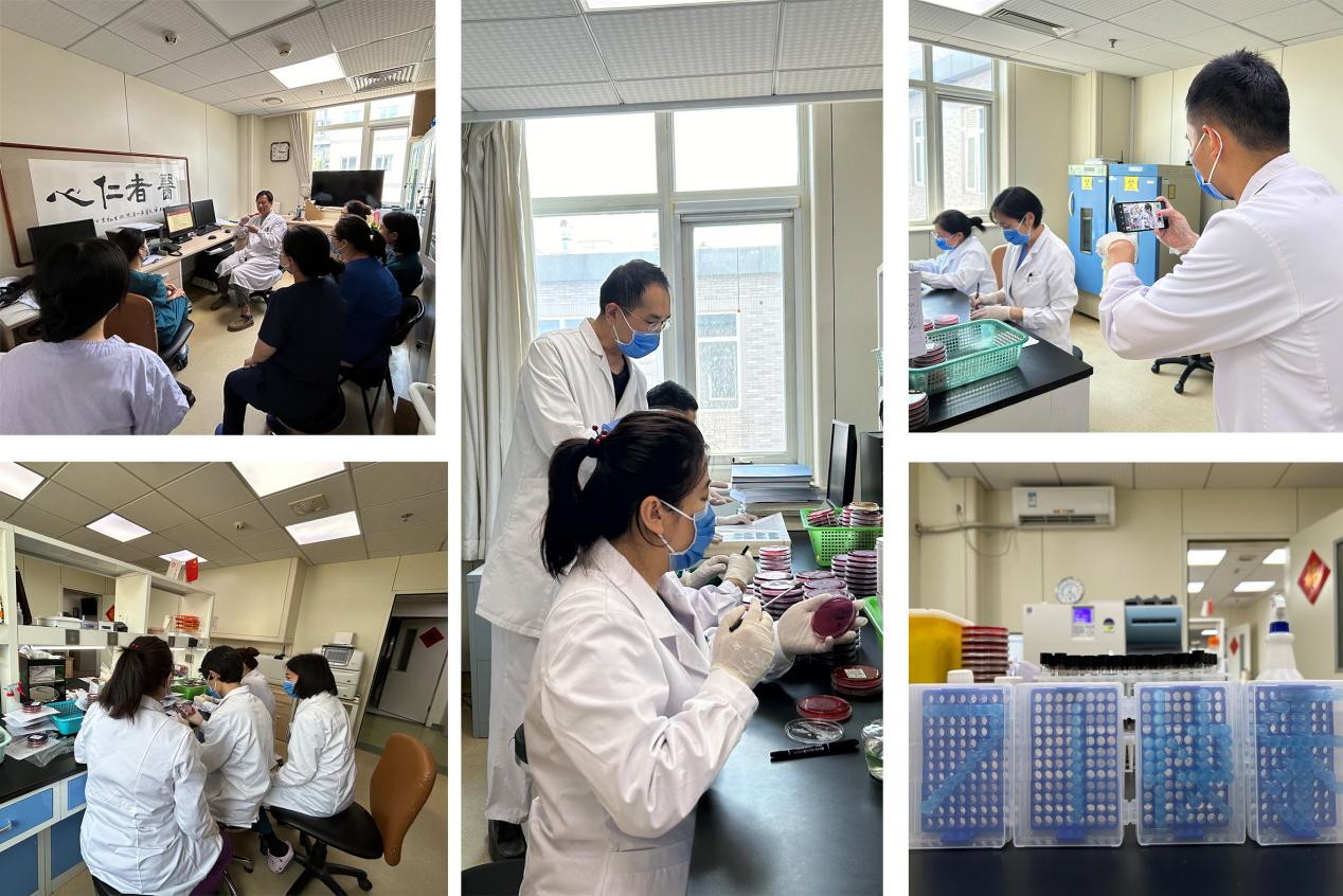 活动期间,党员们以所在岗位为单位,带领进修医、实习老师和同学们分析尿液样本留取不规范对细菌培养结果的影响,包括理论知识学习、临床样本识别筛分、可疑致病菌分纯以及菌种鉴定和药敏检测,并有老师对整个过程进行记录总结,制作了一期《“中段尿”怎么留?》微生物科普海报和视频,以简洁高效形式协助就诊人员留取规范样本,提升病原检出率。