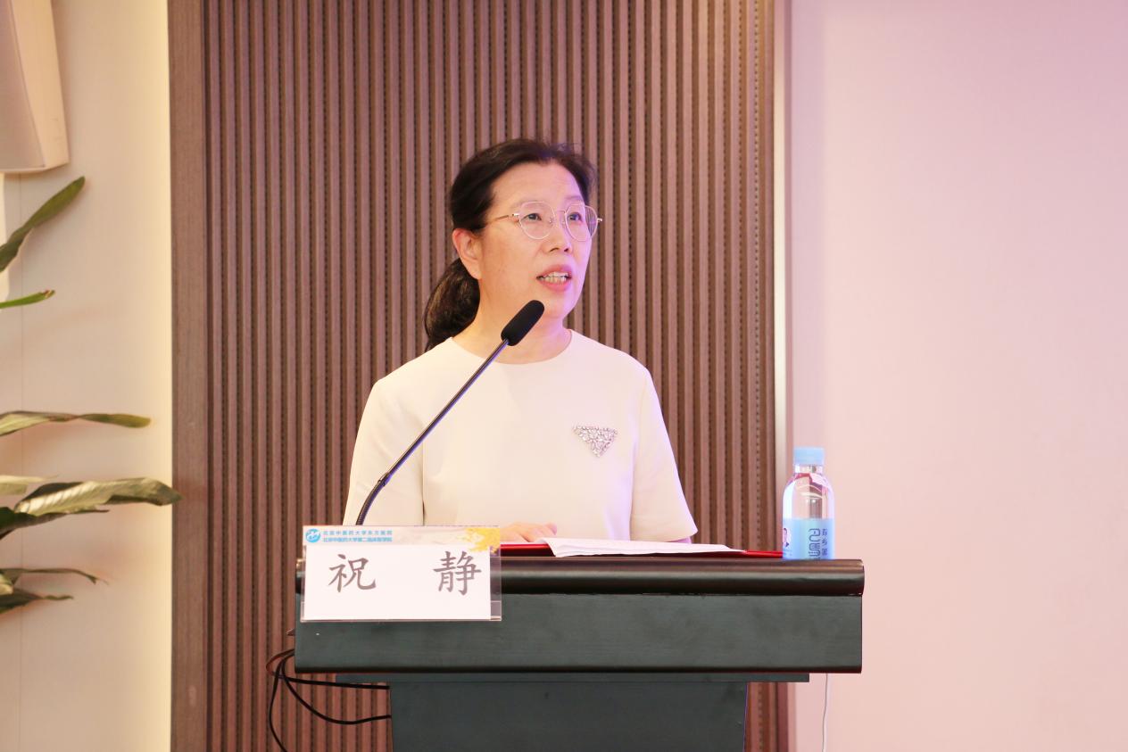 北京市中医药管理局医政处祝静调研员致辞,她指出,中医药文化源远流长,国家尤为重视发展中医文化,北京市中医药管理局积极落实国家政策,深入实施中医药文化弘扬工程,在服贸会中医药主题日上发布了重点项目“融合发展中西医结合护理案例库”,激发了中医数字资源跨学科整合活力,指出,中医护理作为中国传统文化精粹,在振兴中医的政策环境下,应当把握机遇,发挥优势,突出特色,打造中医护理文化传播平台,拓展中医护理文化服务。同时,肯定了北京市中医护理能力提升工程办公室长期以来为促进中医护理国际化发展做出的不懈努力,未来希望中医护理能创造出独特的形象,实现一种文化魅力的海外传播。