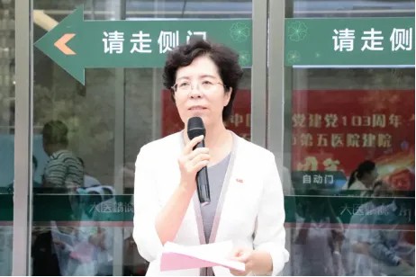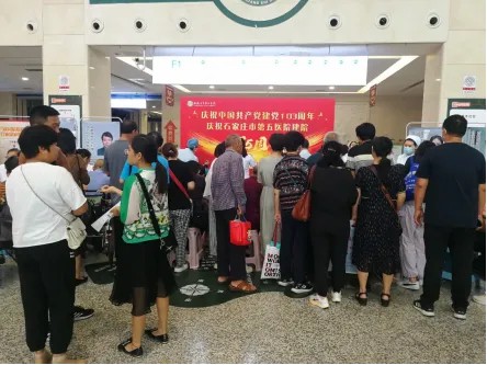 7月1日,石家庄市第五医院举行“颂党恩 迎院庆”京冀专家携手护佑百姓健康大型义诊暨惠民周活动启动仪式。石家庄市卫生健康委党组书记、主任崔芸,北京佑安医院副院长胡中杰及专家团队,石家庄市第五医院党委书记王瑜玲、院长刘春堂出席启动仪式并讲话,会议由院长刘春堂主持。石家庄市第五医院全体领导班子成员、科室主任、支部书记、护士长及部分职工代表参加启动仪式。