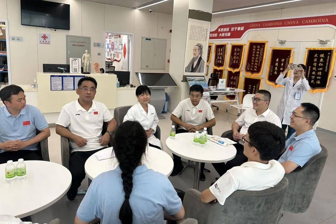 7月3日,任务期满即将返回祖国的我院援柬医疗队员与第三批队员进行交接座谈。医疗队队长远庚带领新一批队员熟悉考斯玛医院中医科的环境,详细介绍了援柬中医医疗队的建立历程和医疗队的主要工作任务,两队队员开展座谈交流。