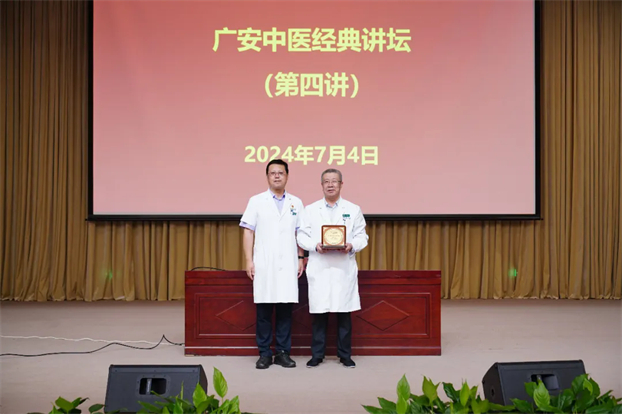 广安门医院院长刘震为花宝金教授颁发“广安中医经典讲坛”聘书和奖牌
