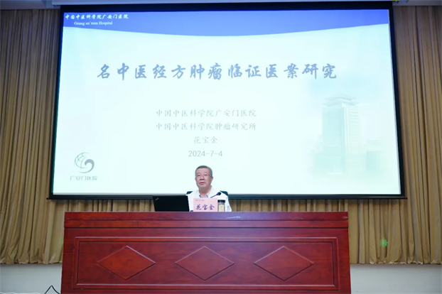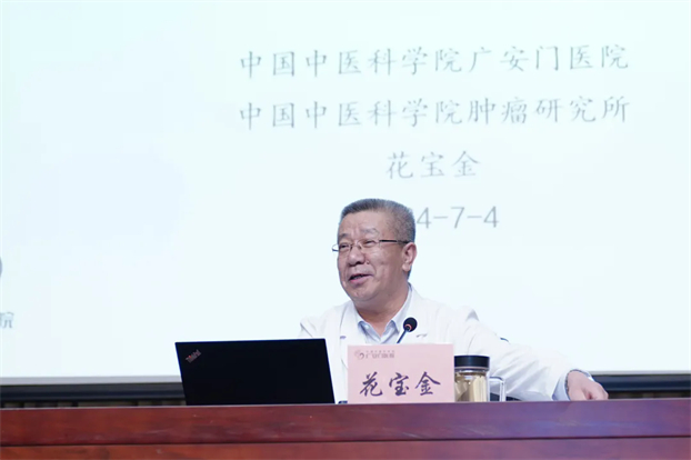岐黄学者花宝金教授作《经方在肺癌防治中的医案及研究》主题讲座。首先介绍了我院国家中医肿瘤重点学科建设及创新发展的情况,对我院肿瘤科学术发展脉络进行了梳理与总结。强调,要充分发挥中医药在肿瘤预防中的独特优势——“关口前移,预防为主”。