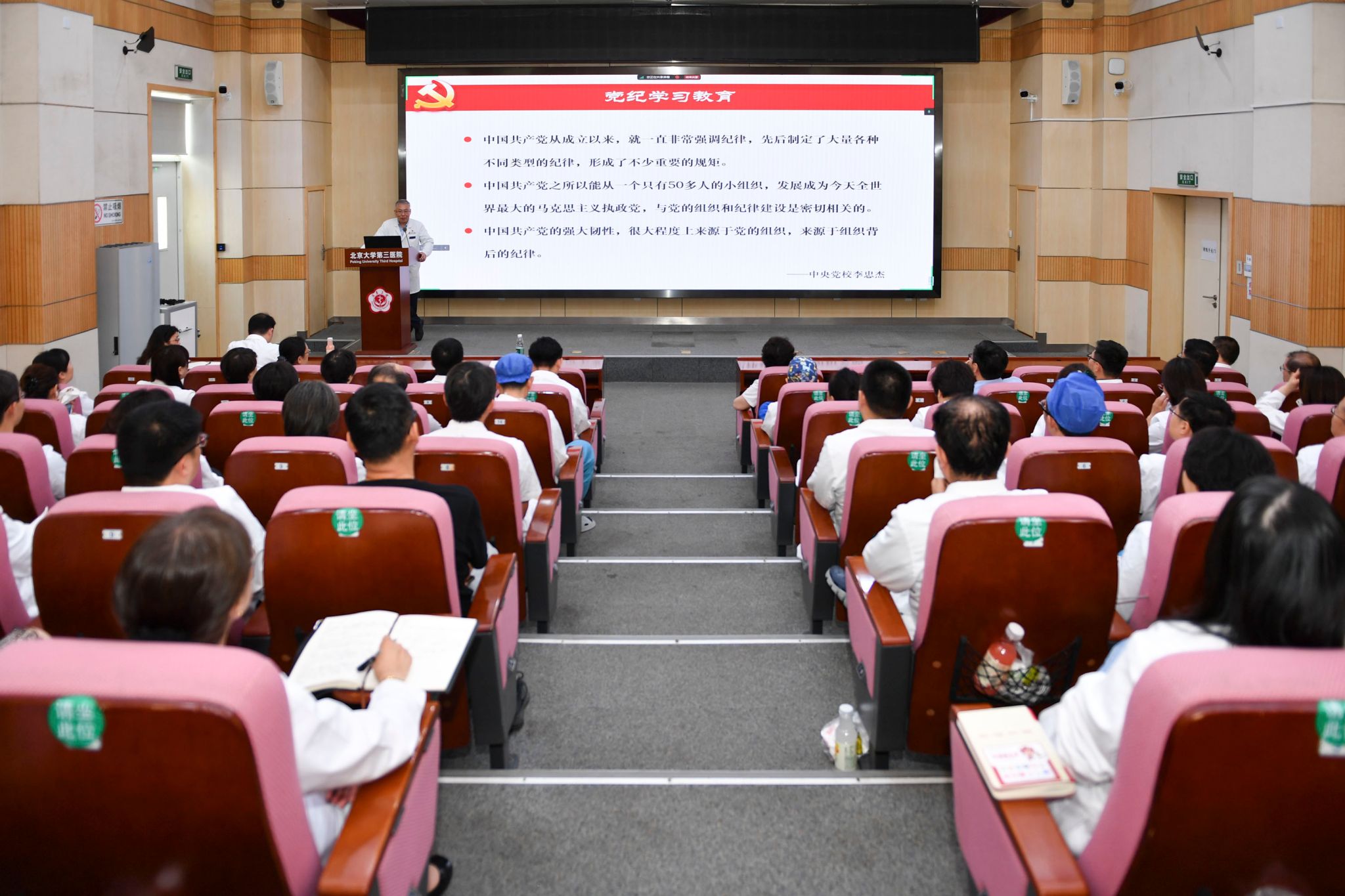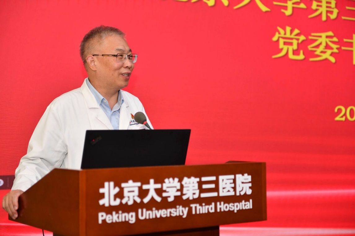 2024年7月3日中午,北京大学第三医院在健康医学中心楼会议室组织召开党纪学习教育会,党委书记金昌晓讲授专题党课。党委副书记刘东明主持会议,党委副书记、纪委书记杨莉及全院党总支、党支部书记参会。
