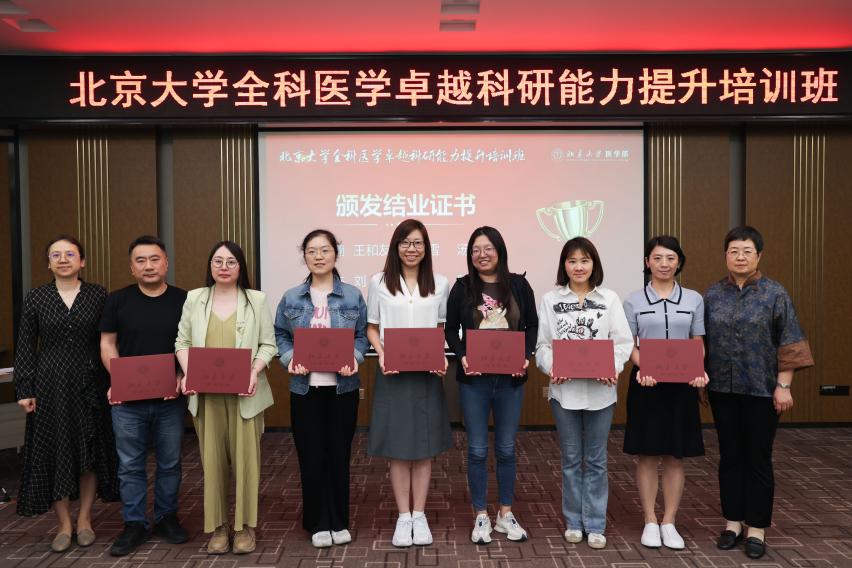 北京大学第一医院全科医学科迟春花主任(右一)和董爱梅副主任(左一)为学员们颁发结业证书