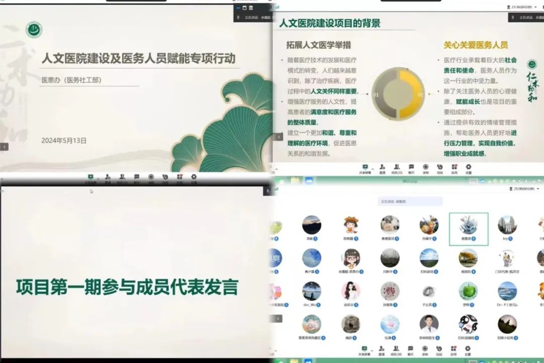 依托该项目,医患办(医务社工部)于2024年5月组织开展人文医院建设专项行动。医院对人文建设工作给予高度重视,组织召开专项行动会议,旨在深入研讨并推动人文建设措施的有效实施。