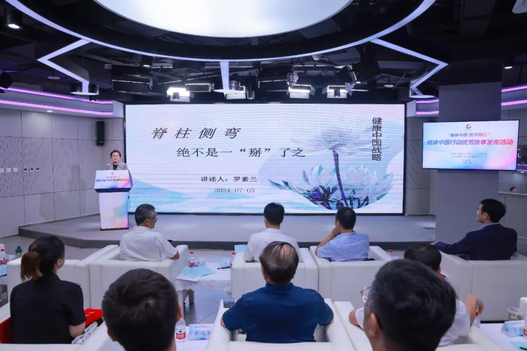 在健康中国行动优秀故事发布仪式现场,罗素兰分享了《脊柱侧弯绝不是一掰了之》身边健康故事,引起现场观众的强烈共鸣。