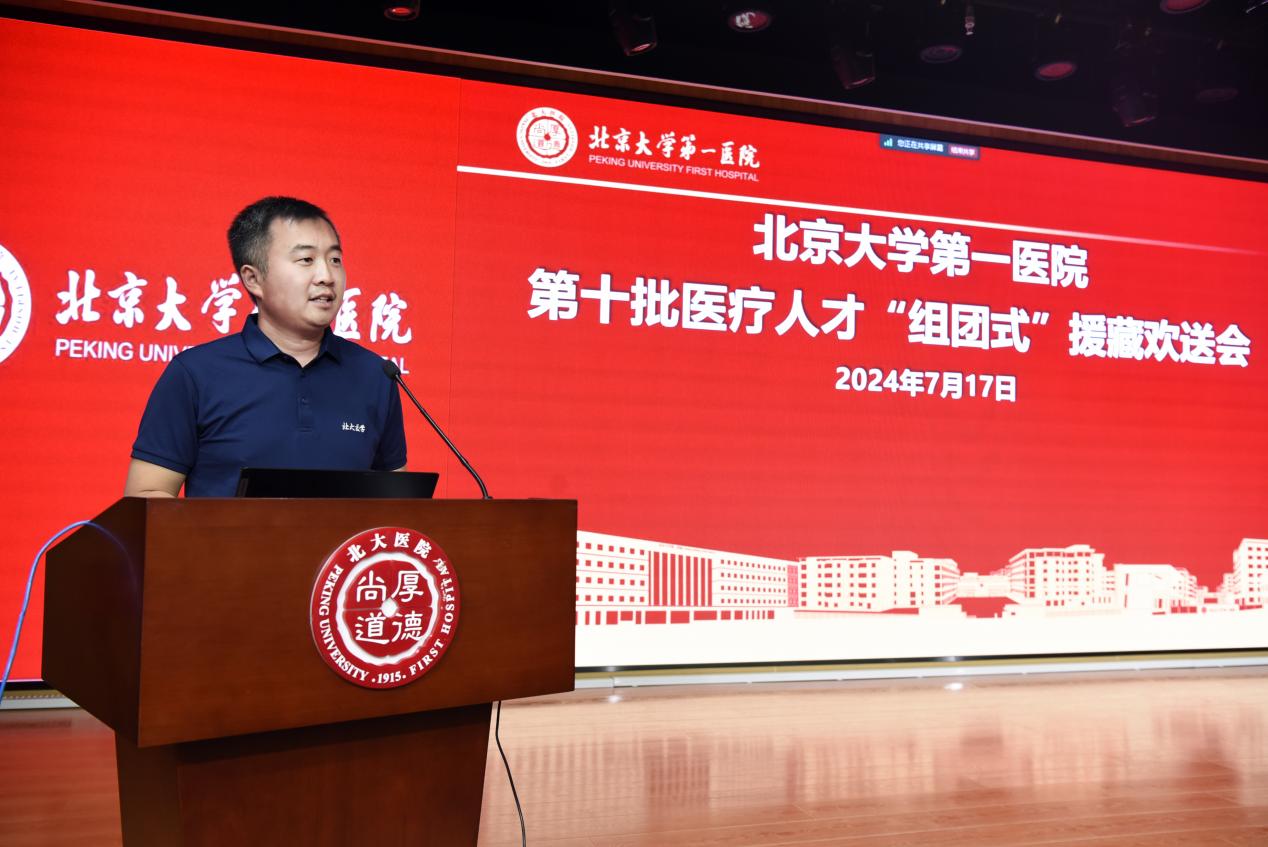 队长李楠代表全体援藏医疗队员发言。他首先感谢了各级领导对援藏医疗队一直以来的信任和支持,并表示全体队员将始终以西藏人民的健康福祉为根本,团结协作、勇往直前,把先进的医疗技术和管理经验带到西藏,将北大医院厚德尚道的精神深植高原,高质量地完成援藏工作。