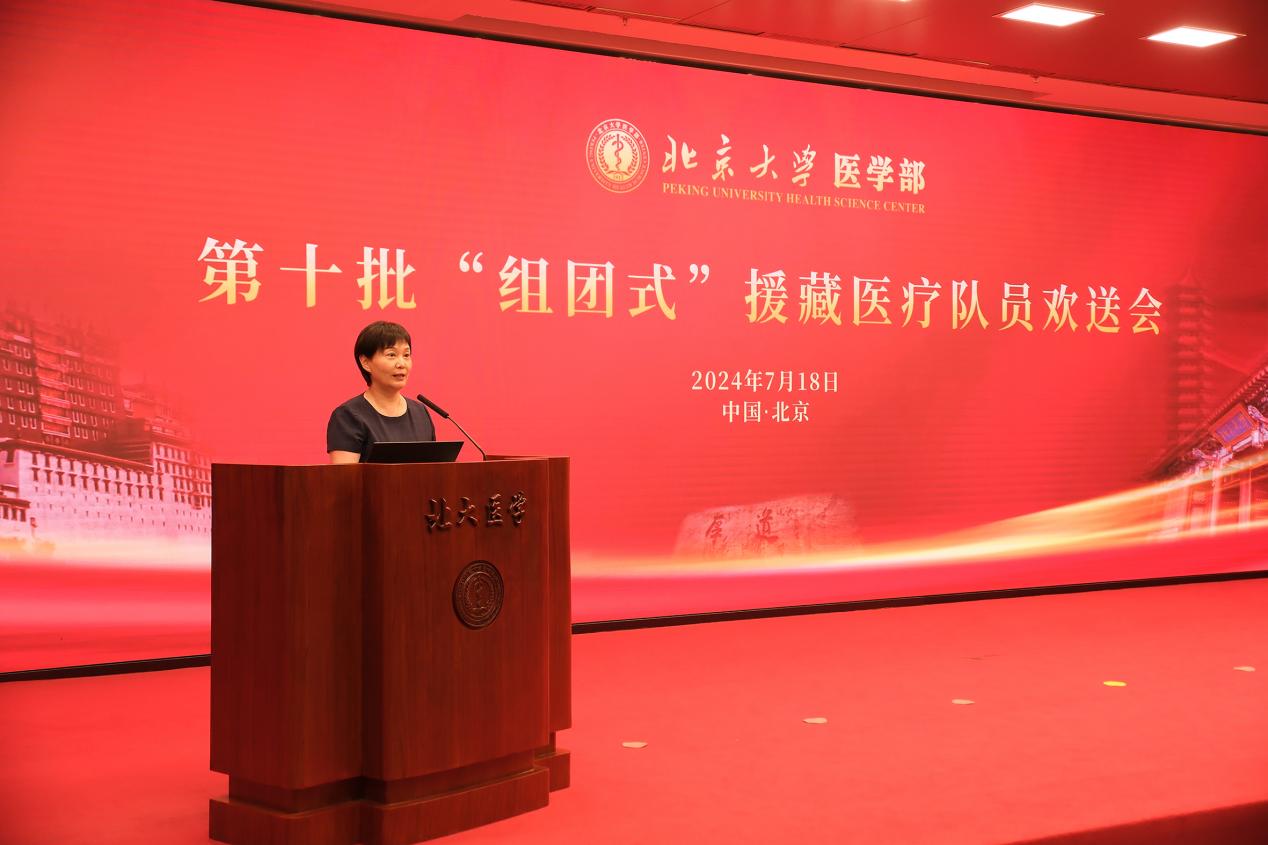 7月18日下午,北京大学医学部召开了第十批“组团式”援藏医疗队欢送会,国家卫生健康委员会、北京大学、医学部相关领导,第十批援藏医疗队员以及其所在医院、科室领导和家属参加会议。