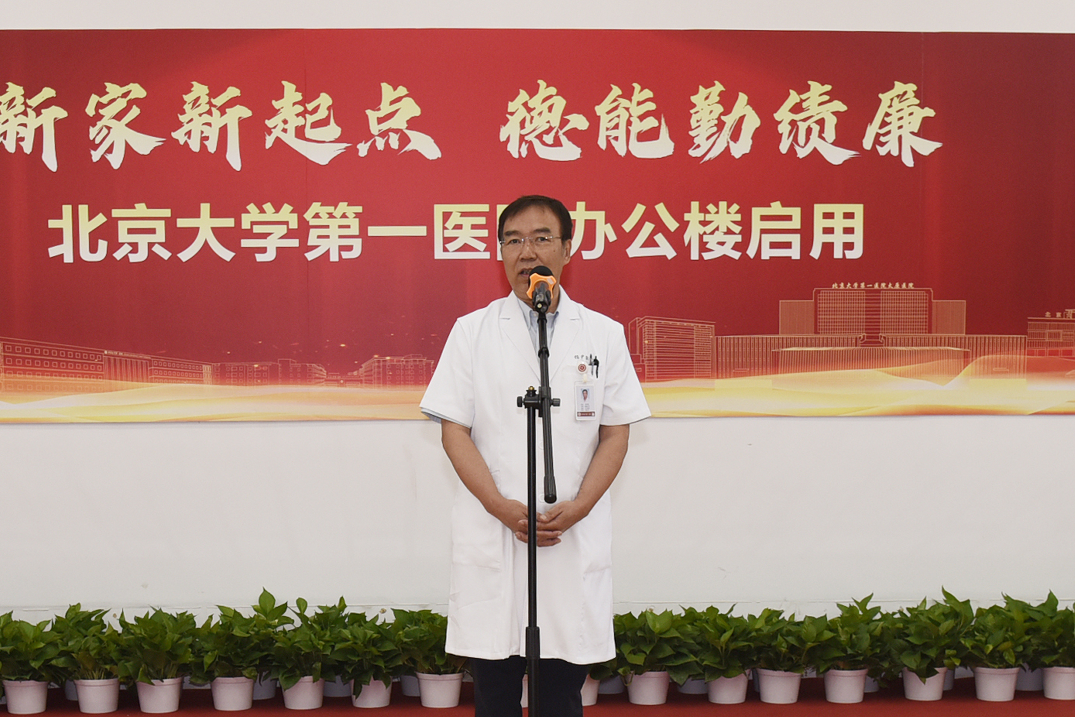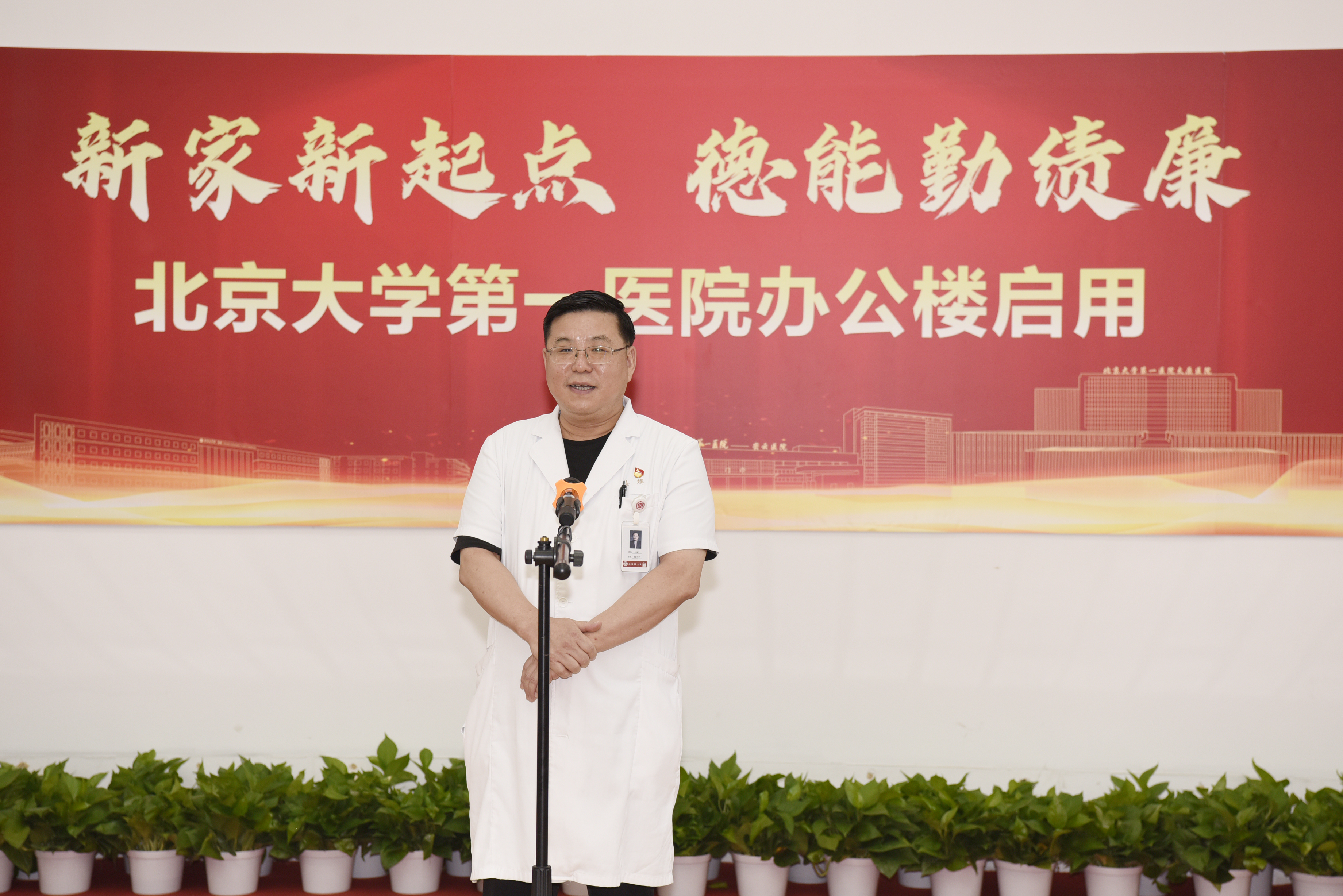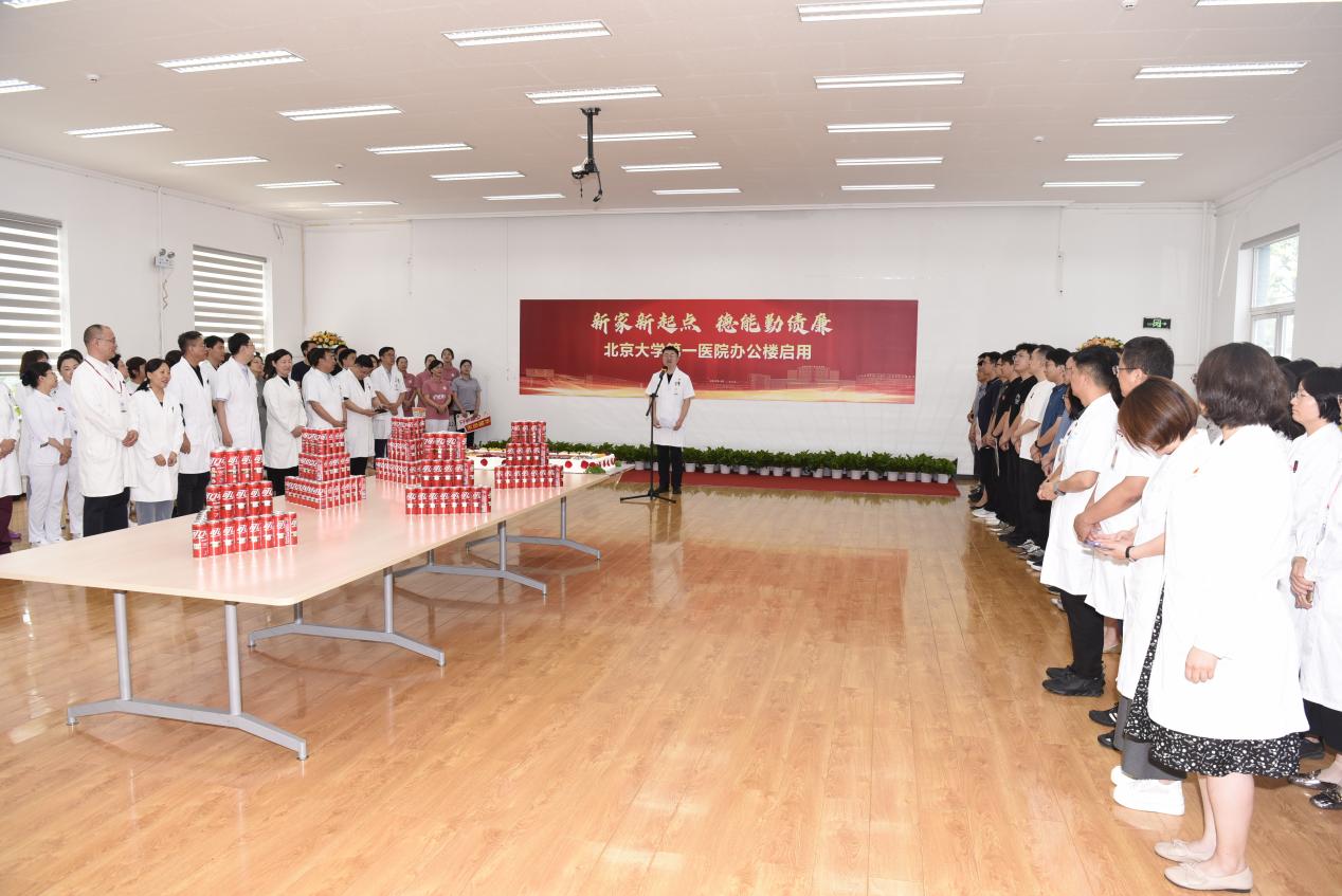 为了提升医院职能管理效率和水平,为医院发展注入新的动力与活力,历经394天的调研、谈判、签约,50天的工程改造,16天的搬迁,北京大学第一医院办公楼正式启用。7月22日中午,以“新家新起点,德能勤绩廉”为主题,医院各职能处室在新办公楼举行了简单而热烈的启用仪式。党委书记姜辉、院长杨尹默等在院党政领导班子成员,职能处室代表共100余人参加了启动仪式。仪式由党院办主任史楠主持。