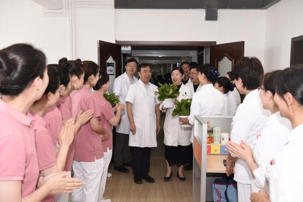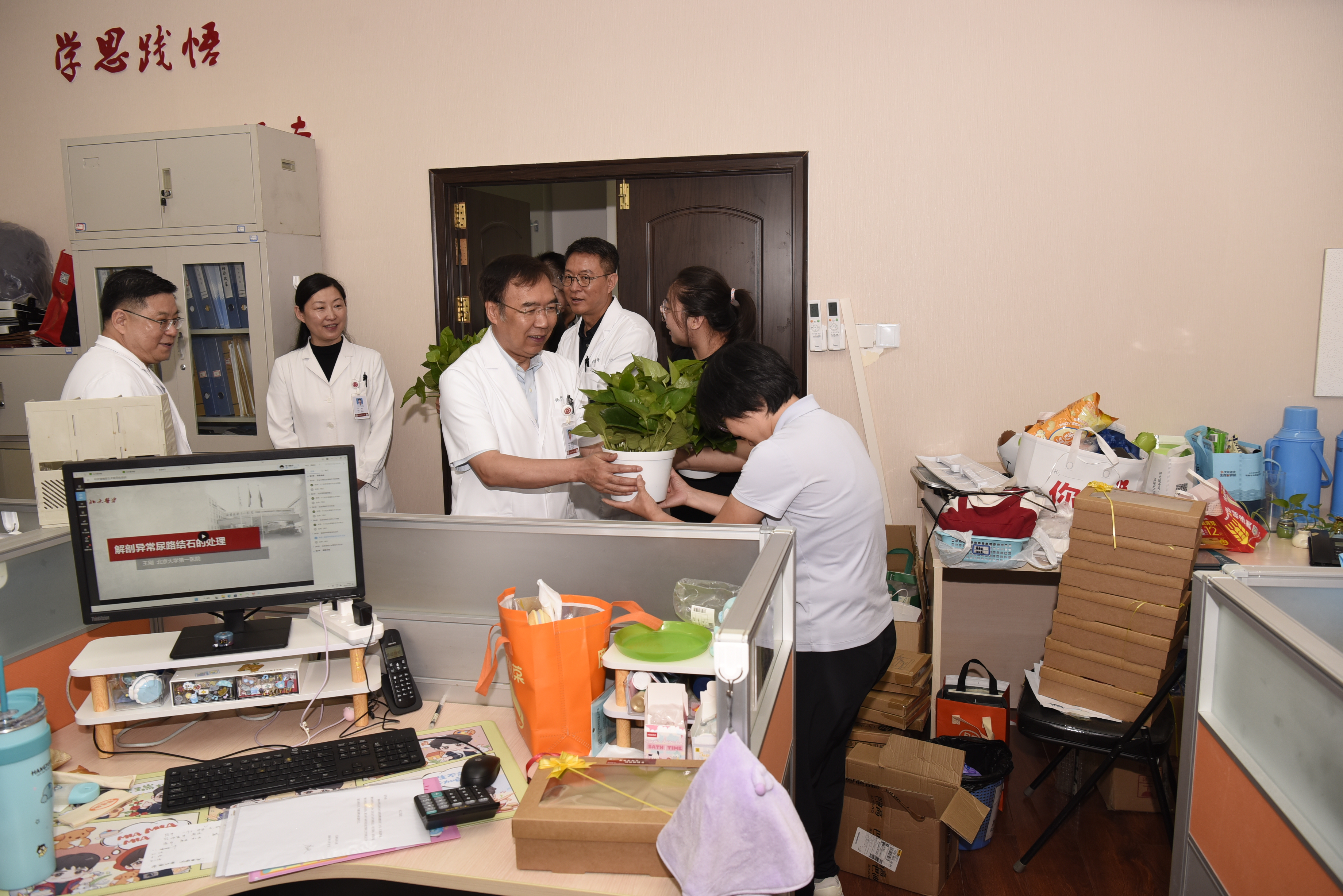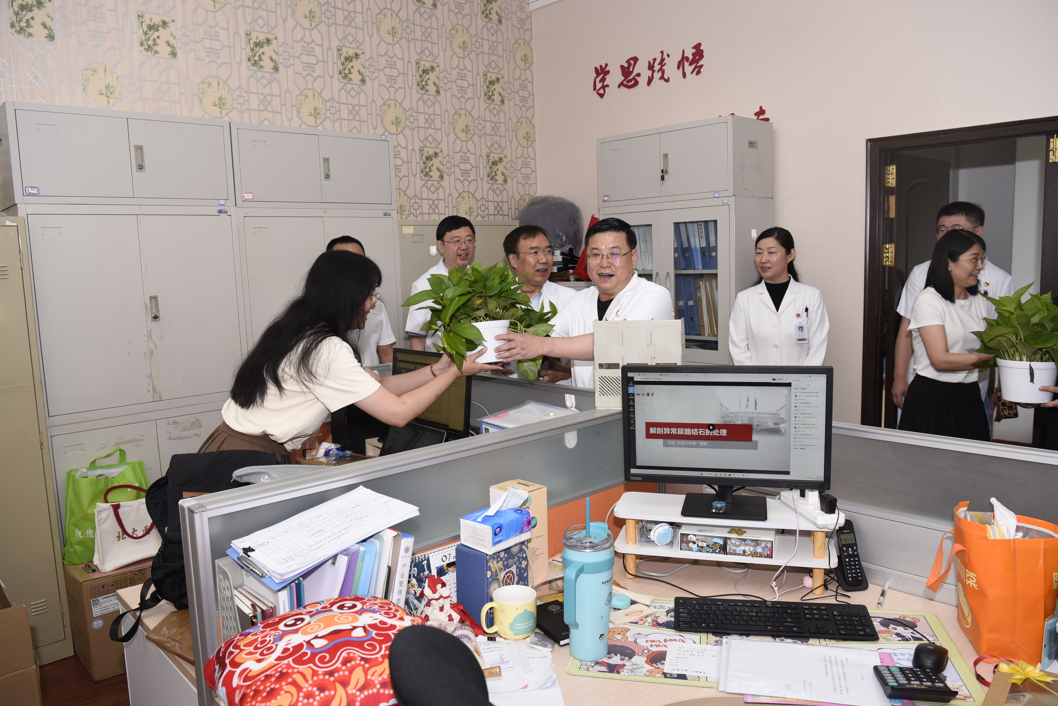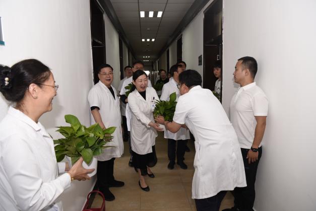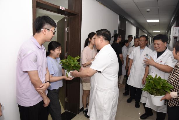 院领导在新办公楼慰问各部门并发放绿植,为大家加油鼓劲