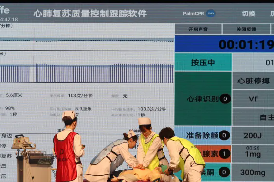 本次比赛分为两个环节,理论知识测试、实际操作考核。实操环节不仅考验参赛者对CPR(心肺复苏)技术的掌握程度,还包括主观评分和客观评分两方面,其中,主观评分主要评估团队的协作能力和操作流畅性,客观评分则侧重于技术执行的准确性和效率。