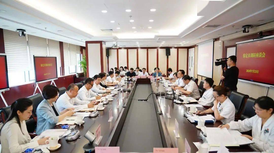 2024年7月23日,保定市市委书记党晓龙、市长闫继红一行到我院调研国家区域医疗中心建设情况。保定市发改委、市卫健委,保定市高新区管委会,保定市国际医疗基地管委会陪同调研,我院院领导及相关职能部门负责同志参加座谈。北京市卫健委副主任王建辉主持会议。