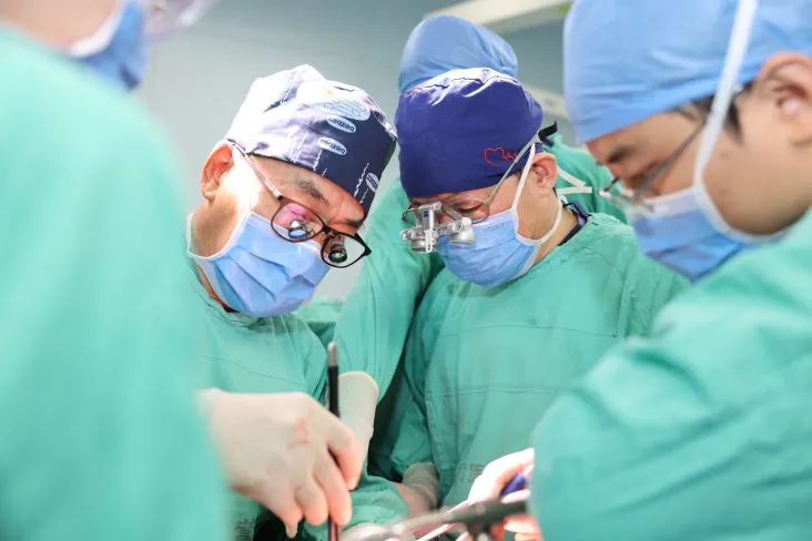 27日,手术开始。打开患者腹腔后,胃网膜广泛粘连,手术十分复杂。在纪智礼与贺强的共同努力下,在吴安石与手术室护士的精准配合下,以及医务处、病理科、输血科、重症医学科的大力支持下,顺利为患者完成腹腔粘连的分离,手术共经历10个小时,术后患者各项体征平稳,转入重症监护室。