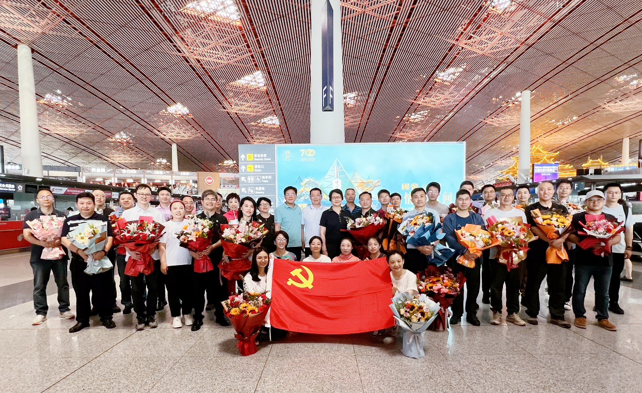 7月28日,援藏干部启程。北京中医医院党委书记刘中勋带领党支部及科室相关人员到机场送行。