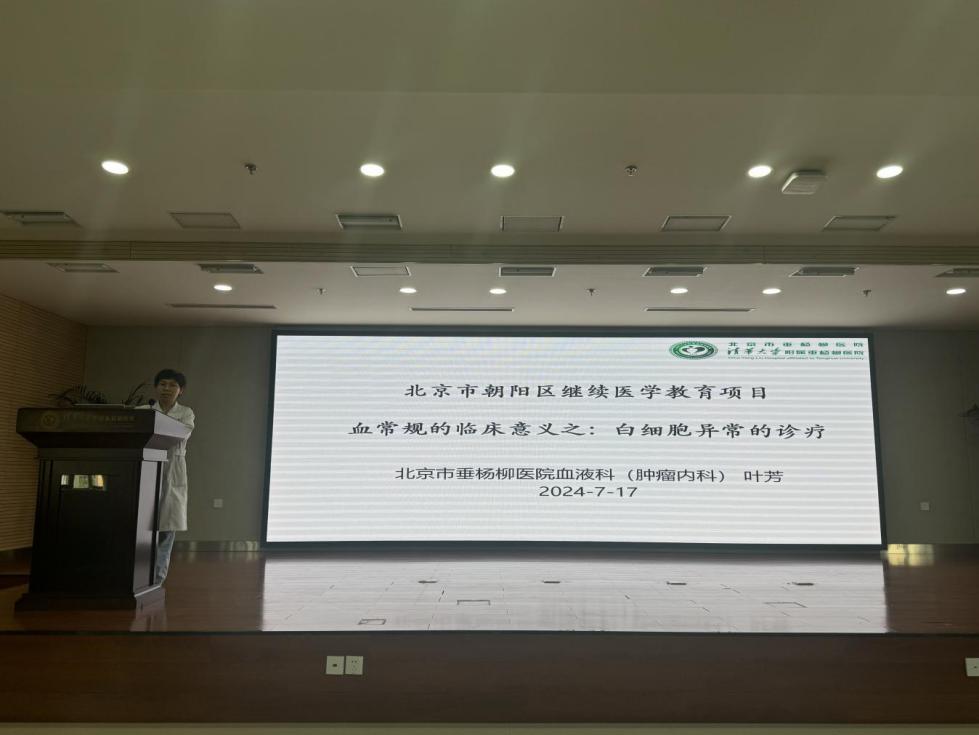 会议由清华大学附属垂杨柳医院血液科(肿瘤内科)主任叶芳主持。首先叶芳介绍了医院和科室基本情况;之后做了《白细胞异常的诊断和鉴别诊断》的讲座;