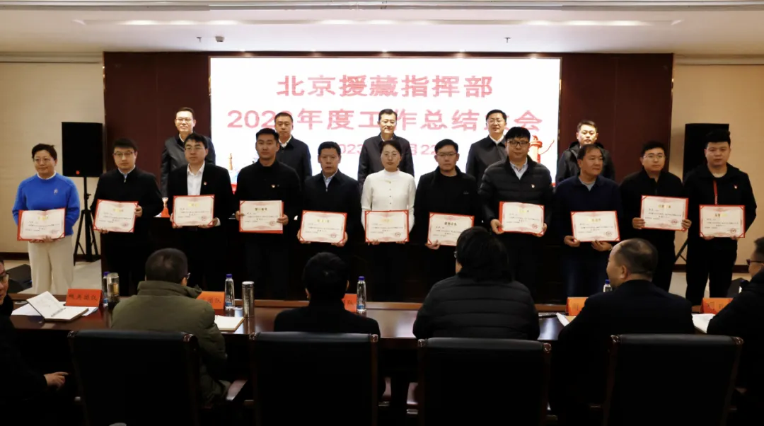 马秋艳(前排左六)获颁“北京援藏2023年度先进个人”奖状