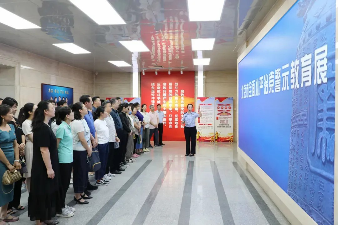 北京市全面从严治党警示教育基地展览以“总书记的告诫”开篇,以习近平总书记重要论述为主线,集中展示了以习近平同志为核心的党中央坚持党要管党、全面从严治党取得的伟大成就以及近年来反腐败斗争取得的系列成果。全体人员集体观看了警示教育宣传片,参观了“挺纪在前、筑牢防线”“以案为鉴、知畏知止”“不忘初心、牢记使命”三个专题展览。通过以案说法、以案明纪、以案为鉴、以案促改,警醒党员干部要牢固树立纪律和规矩意识,时刻自重自省,知敬畏、存戒惧、守底线。最后,在纪委委员于红卫的带领下,全体党员面向党旗、高举右拳,重温入党誓词。