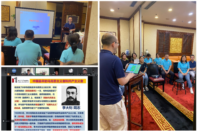 北京大学肿瘤医院乳腺中心党支部书记何英剑进行了《中国共产党史-新民主主义革命时期》的党课讲授,号召大家牢记党的初心使命,学史增信,学史力行,从党的历史中汲取智慧和力量,从党史的重要历史事实中,体会党的成功经验和失败教训,提升共产党人不断自我革命的精神和意志,也为接下来的线下参观活动做好铺垫。
