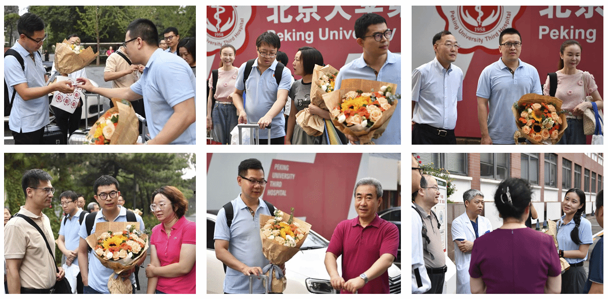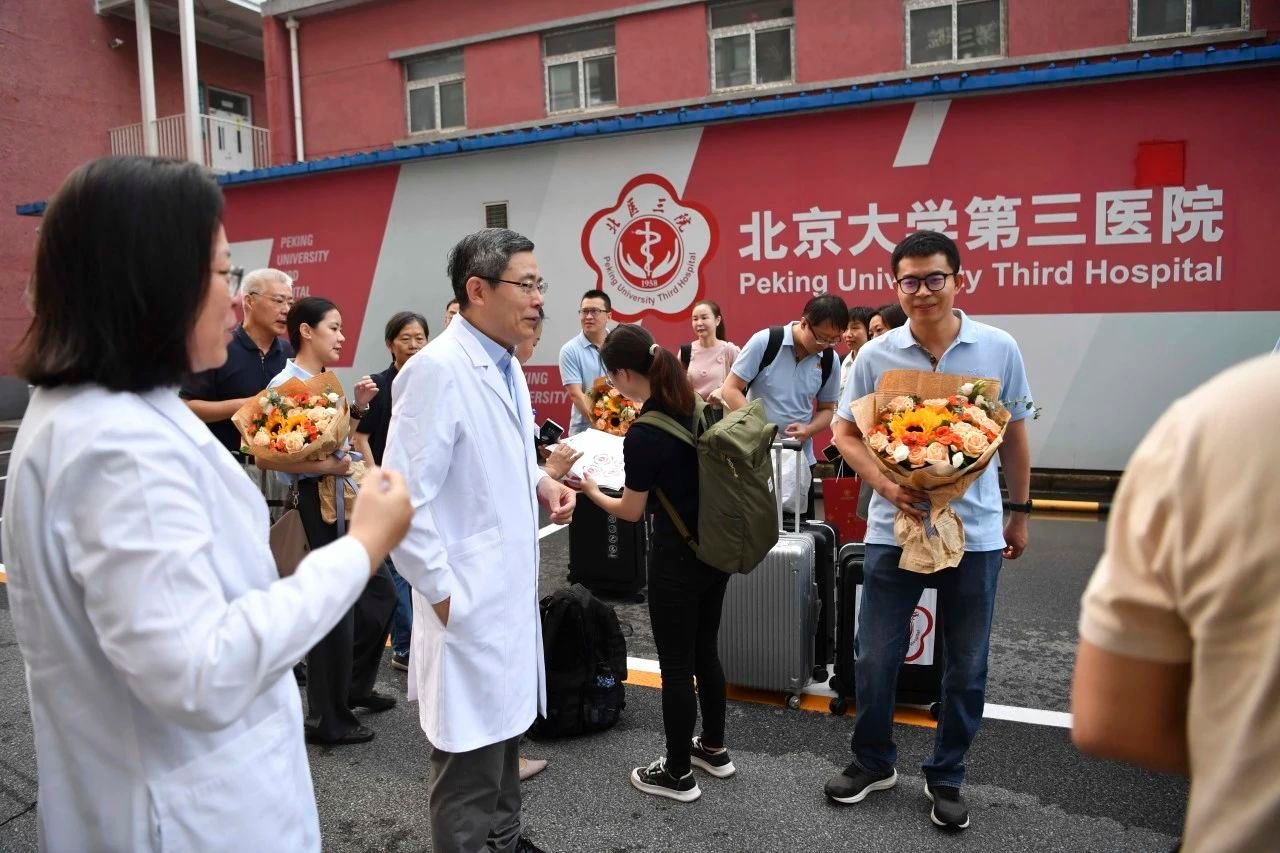 北京大学第三医院院长付卫,党委副书记、纪委书记杨莉,副院长李蓉等院领导,医务处、党院办、人事处、宣传中心、工会等部门负责人,早早来到楼前,为队员们送行。