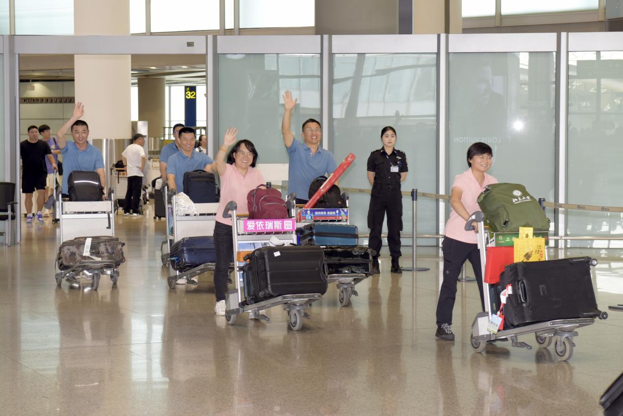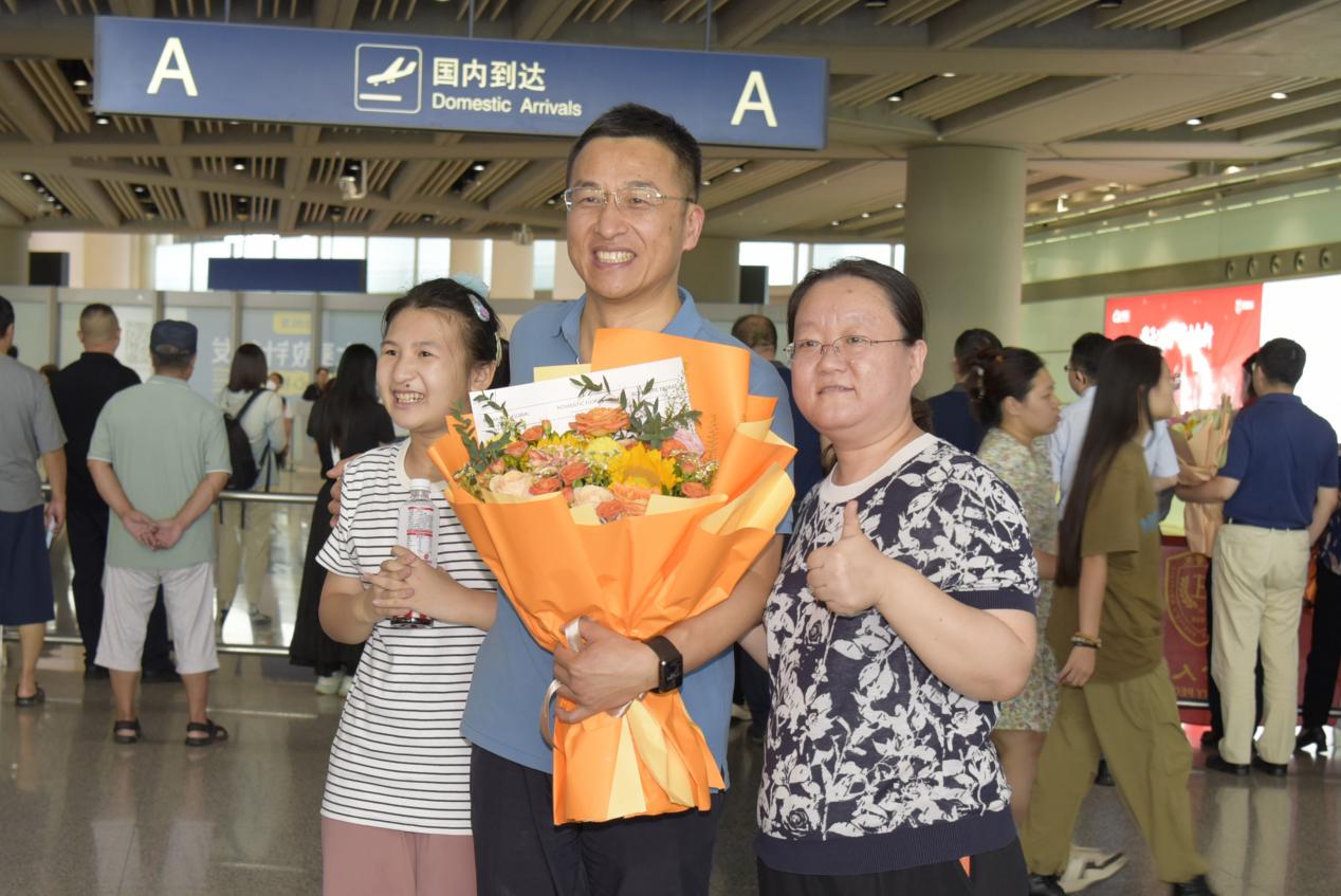 8月12日,北大医院第九批“组团式”援藏医疗队圆满完成了援藏任务,6名队员们满载荣誉与收获平安返京,他们是:骨科张道俭、儿童医学中心刘晓宇、呼吸和危重症医学科廖纪萍、耳鼻咽喉-头颈外科文锋、急诊科皮海辰、保卫处胡朝城。首都机场内,党委副书记、纪委书记程苏华带队,各派出科室、处室代表及工会、国内合作处、宣传中心等相关处室代表早已等候在机场,第一时间为他们送上了回家的祝贺和崇高的敬意。