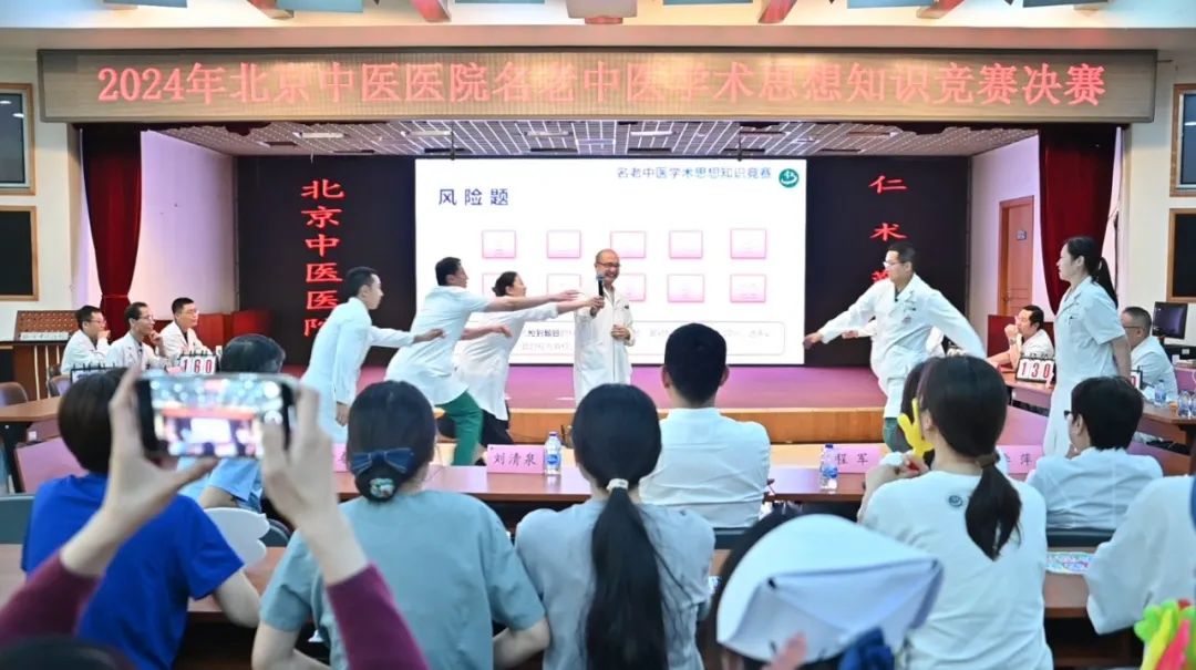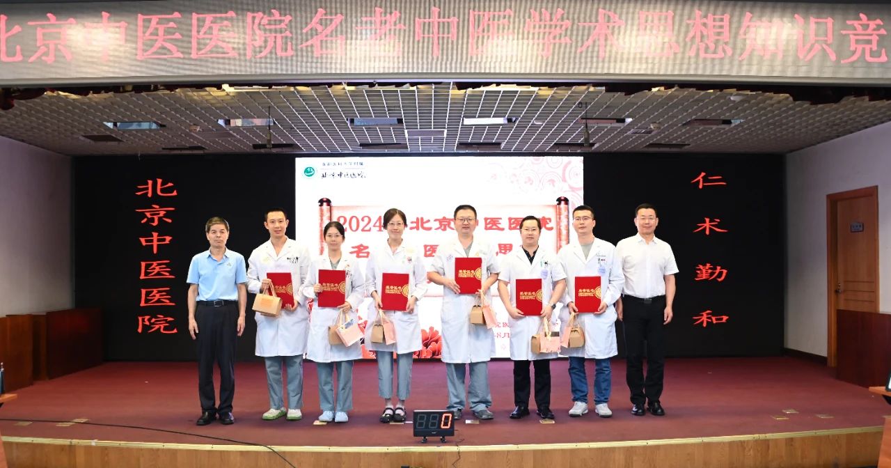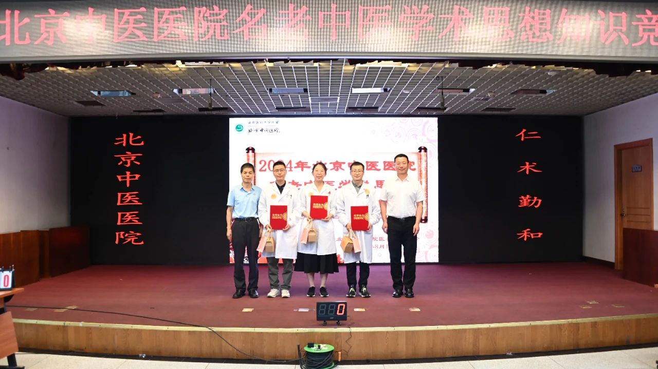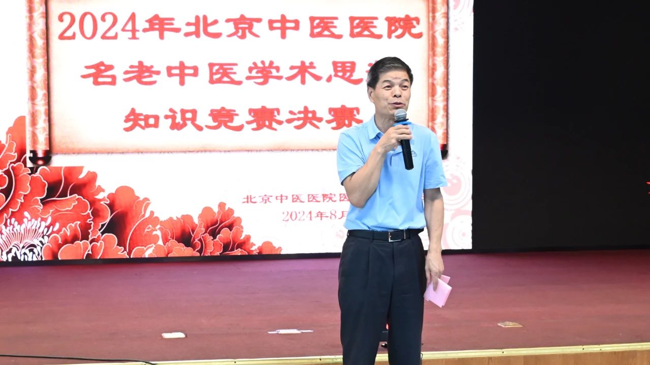 为迎接第七届中国医师节,促进名老中医学术思想的传承与发展,8月13日,首都医科大学附属北京中医医院“名老中医学术思想知识竞赛”决赛顺利举办。党委书记刘中勋,党委副书记、院长刘清泉,党委副书记、纪委书记程军,党委委员、副院长杨国旺,总会计师吴光清,党委委员、工会主席徐春军,研究所副所长李萍出席活动。