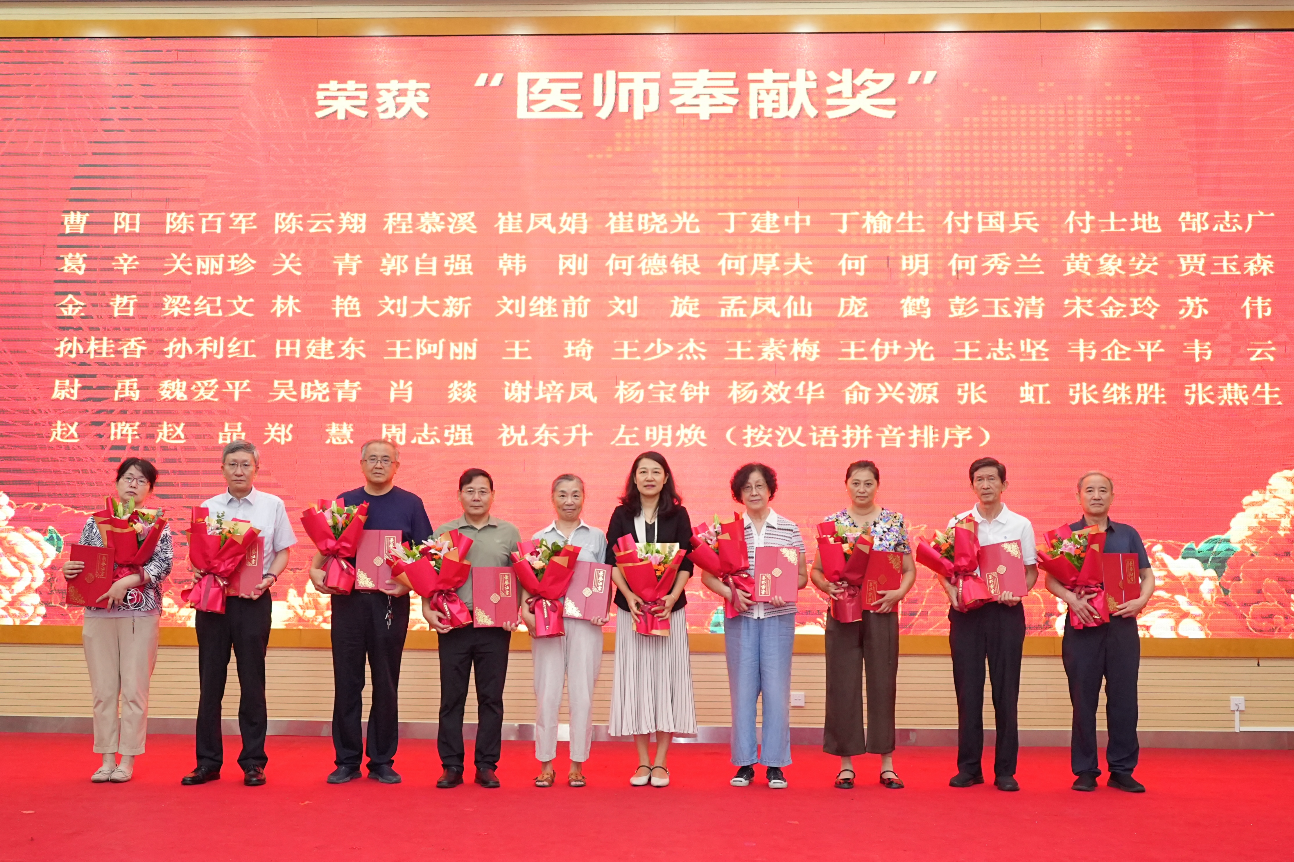 院领导们向本届医师节获奖的先进个人进行颁奖环节将大会推向了高潮。本次表彰设立有医师奉献奖、技术创新奖、门诊医疗标兵奖、住院医疗标兵奖、心脑绿道先锋奖、疑难病例比赛优胜奖、三基考核优秀奖、中药饮片辨识大赛个人奖、及病案优秀奖共9大奖项,全院共224人次获奖。荣誉不仅是对大家辛苦付出的见证,对大家无私奉献的感恩,更是对大家优秀的专业能力的认可。