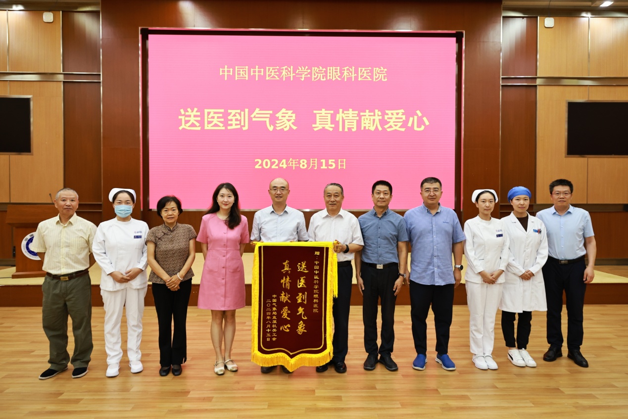 中国气象局直属机关党委常务副书记马明为中国中医科学院眼科医院赠送锦旗