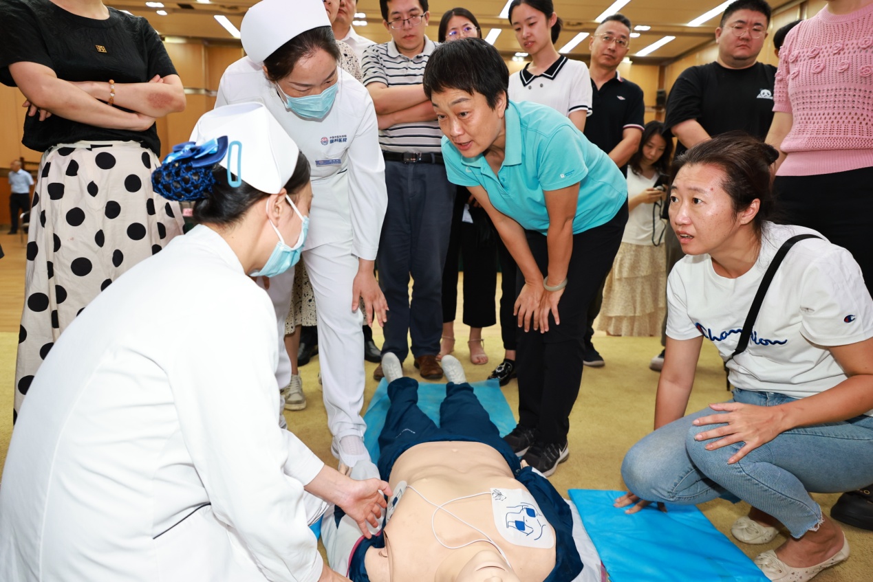 8月15日,中国中医科学院眼科医院党委书记高云带队一行8人走进中国气象局为干部职工进行专业的急救知识技能培训。