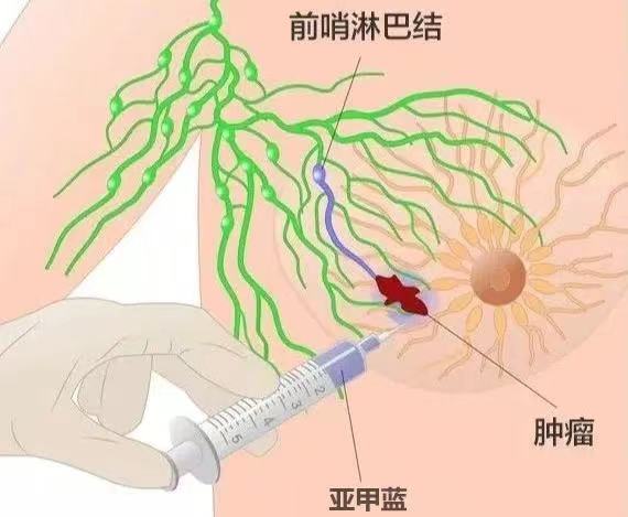 腋窝前哨淋巴结是乳腺癌淋巴转移的第一站,临床上通过前哨淋巴结示踪后进行前哨淋巴结切除活检。若病理为阳性,即淋巴结可见癌灶,则除了切除乳腺肿瘤之外还需进行腋窝淋巴结清扫术,以达到根治性切除的手术目的。若病理为阴性则无需行腋窝淋巴结清扫,只需切除患侧乳房即可;患者的局部复发和远期生存率不受影响,并且可避免腋窝淋巴结清扫带来的上肢水肿、麻木、功能障碍等并发症,提升患者的术后生活质量。因此乳癌根治术中前哨淋巴结的检出阳性率对于最终手术方式的选取十分重要。