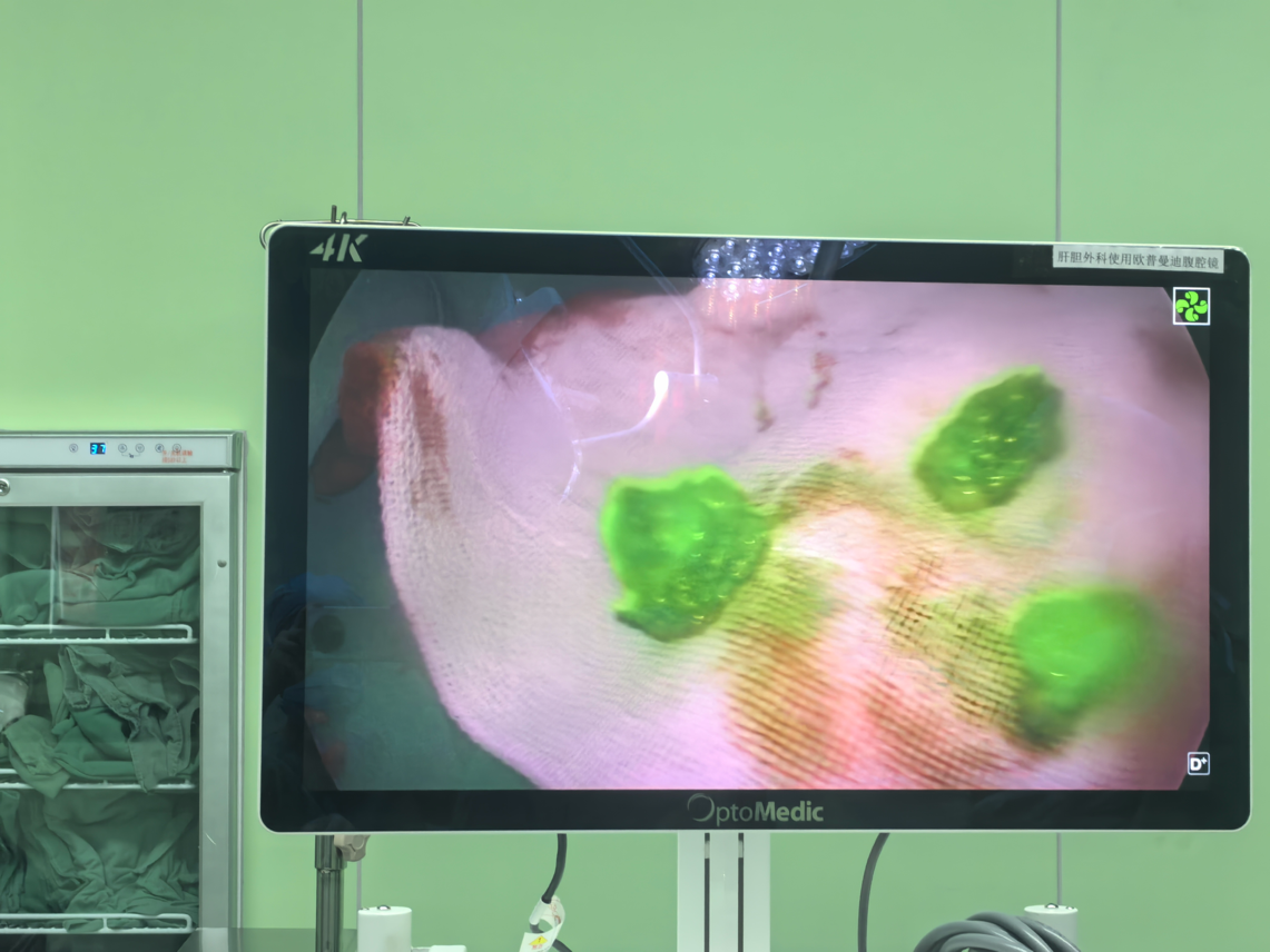 术中检出并切除三枚经荧光标记的前哨淋巴结