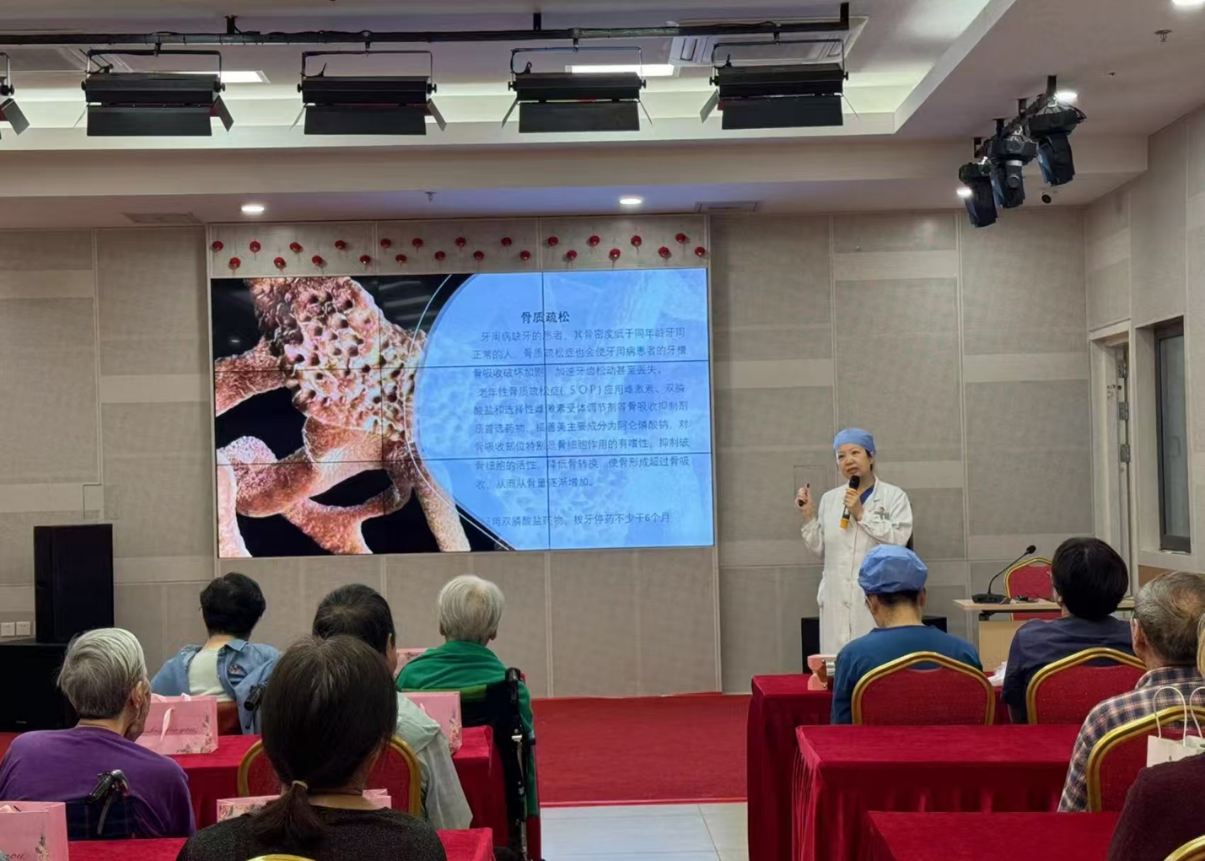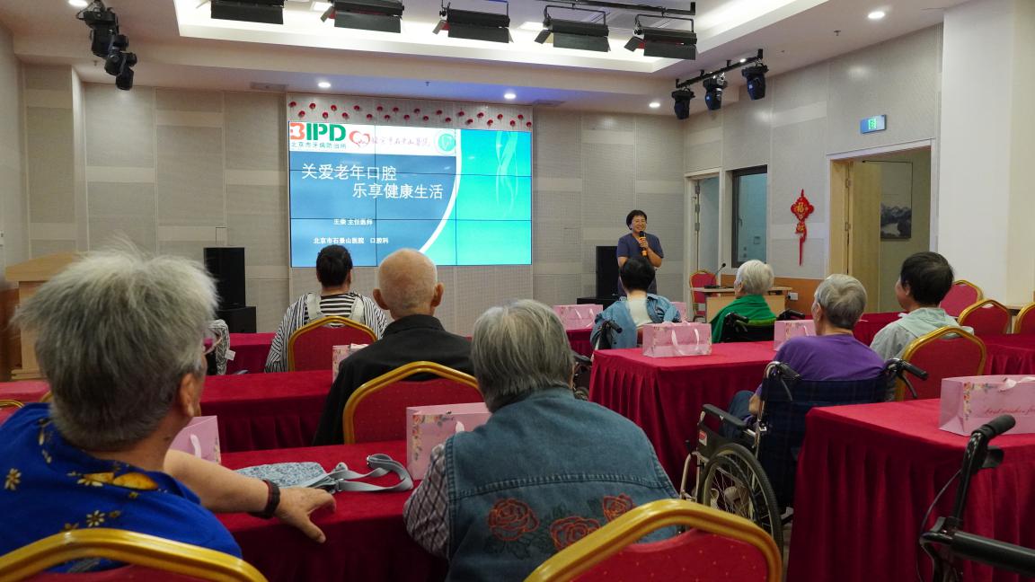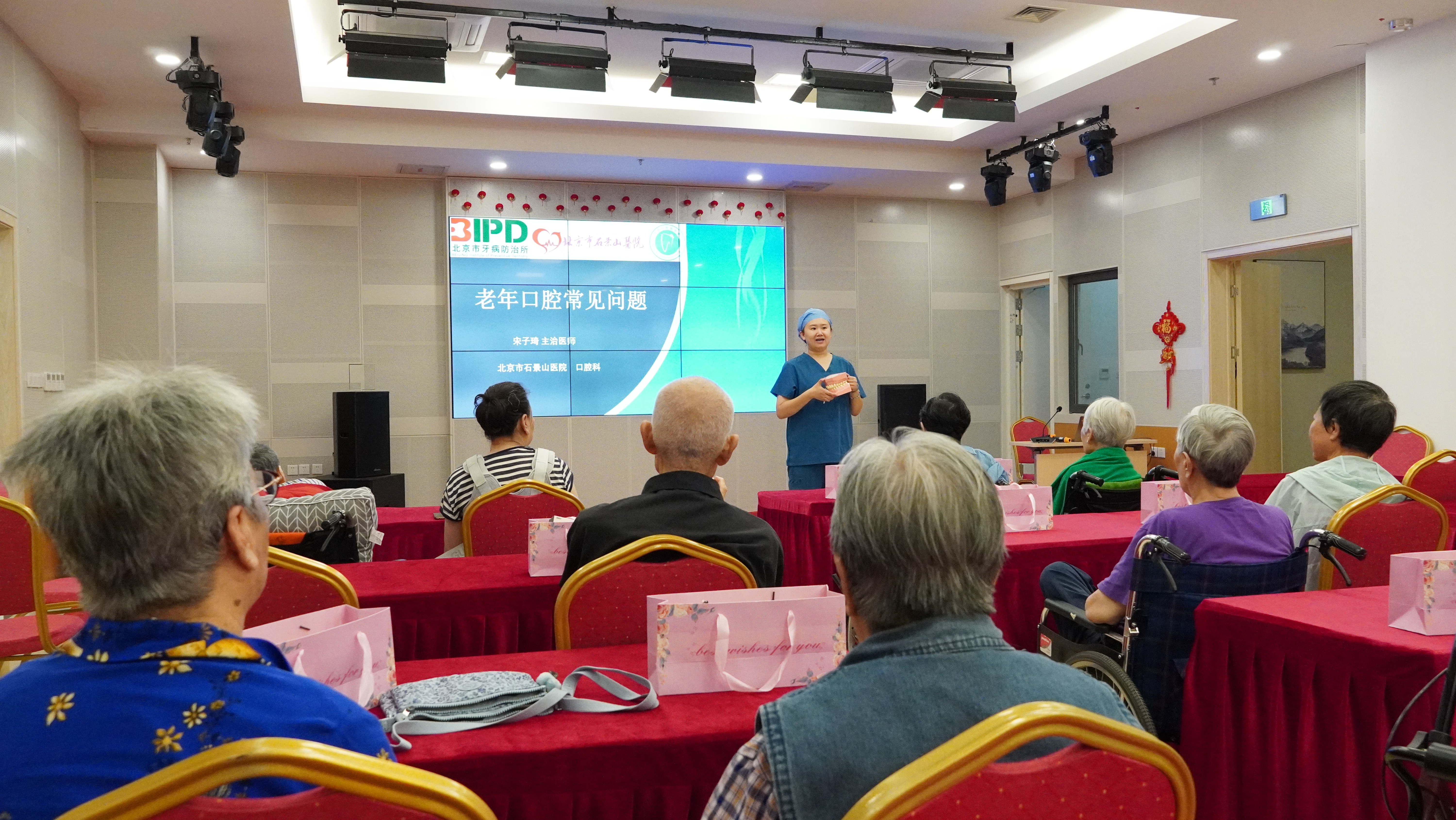 为普及口腔健康知识,改善老年人口腔健康状况,提高老年人健康水平,营造关注老年人口腔健康的社会氛围,推动实现健康老龄化,石景山医院医联体、口腔科共同携手,在幸福颐养护理院开展“关爱老年口腔健康——实现8020”健康讲座义诊活动。