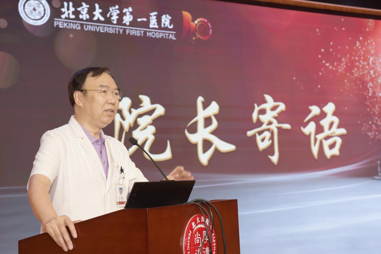 迎新仪式伊始,杨尹默院长致欢迎辞。杨院长代表医院全体教职员工,向新同学和新学员致以热烈的欢迎。他指出,北大医院始终以培育高水平医疗人才为己任,自成立以来不断探索、不断突破。随着时代的发展,北大医院始终贯彻落实“立德树人”根本任务,坚持以全员、全程、全方位“三全育人”培养德医双修医学新人才。同时,医院始终将青年人才梯队建设放在首要位置,不断为青年人才提供有力支持。杨院长对学生们提出要求和期待,站在当前建院110周年的新起点上,每一位同学都应当做到以下几点: