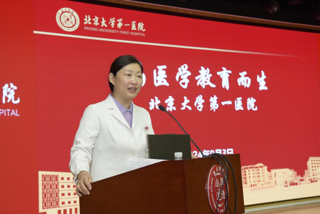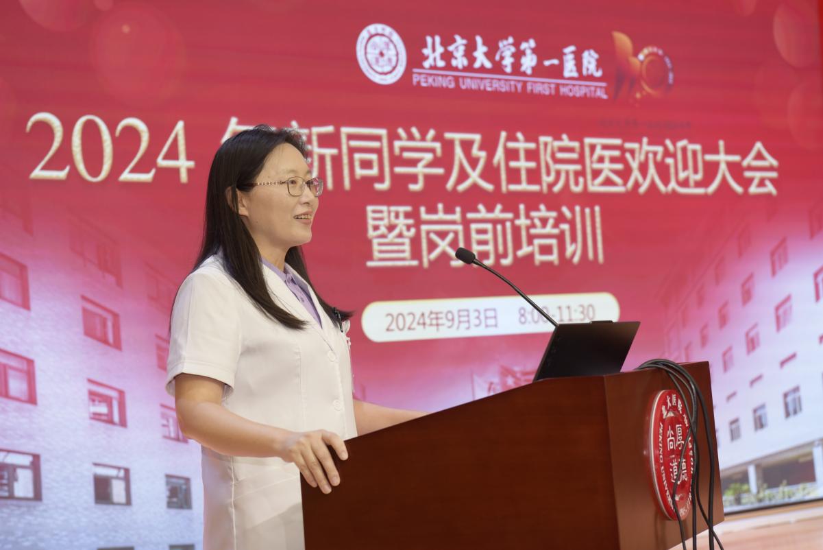 杨莉副院长以《为医学教育而生》为题,全面系统介绍了北大医院的教育教学情况和教学发展的百年历程。在优势教学平台的支撑、名师名家的引领下,教学团队持续打造体系化的培养方案。以“培养德才兼备的高层次人才”为目标,不断优化研究生培养体系,有组织地提升研究生创新教育以及领导力发展路径,提高学位论文质量,实现一流研究生教育。杨莉副院长还介绍了北大医院特色的“胜任力导向”毕业后医学教育体系,在该体系的带动下,住培医师结业率常年位于北京市前列,培养质量稳步提高。最后,杨莉副院长寄语新同学们能够开阔视野、活跃思想、持续探索、扎实实践,取得职业生涯新成就,为北大医院高质量发展贡献力量。