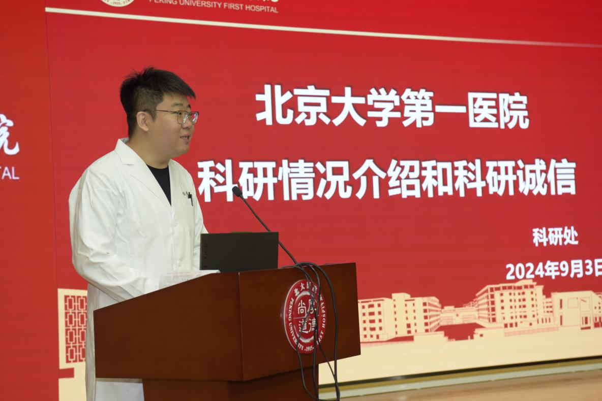 杨照副主任围绕科研情况以及科研诚信为新生进行了培训。北大医院具有多个领先的学科领域,具有国际视野的领军人才队伍以及国家级的创新中心。在优秀的科研支撑体系支持下,包括基金课题、SCI论文、专利等在内的科研产出呈逐年上升趋势。研究生作为青年人才的后备力量,要有长远发展的眼光。他鼓励新生们应当弘扬科学家精神,以追求真理、探索科学规律为己任,以严格的自律精神为准则,高度珍惜并自觉维护科学的尊严和国家、学校、医院、个人的学术名誉。