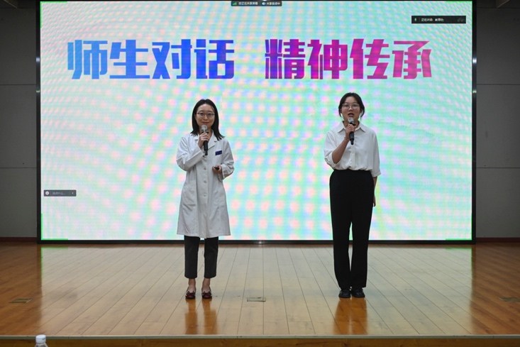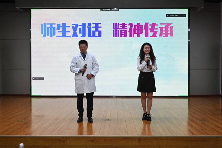 会上,还进行了师生对话。泌尿外科邓绍晖、药剂科董淑杰、护理部刘聪颖、心血管内科肖晗4位老师和张诗雯、高媛、陈紫婷、张方雪4位同学进行师生对话,同学们敞开心扉,大胆提问,老师们分享了他们自己成长经历和感悟,师生对话既温情又深刻。