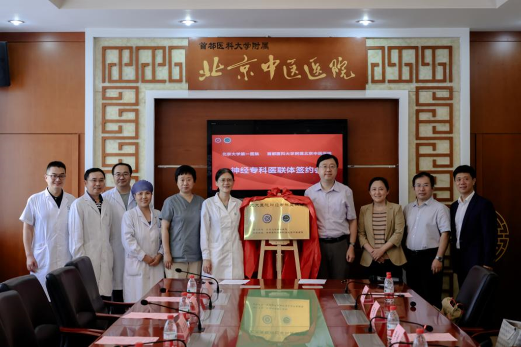 为了进一步促进神经专科中西医结合协同发展,优化医疗资源,方便患者就医,提高神经专科疾病中西医结合诊治能力,9月9日首都医科大学附属北京中医医院针灸/康复/神经内科与北大神经内科、神经外科共同举办了神经专科医联体签约揭牌仪式。北京中医医院院长刘清泉、副院长李彬、医务处处长宣雅波、针灸/康复/神经内科副主任孙敬青以及北京大学第一医院副院长李航、医务处处长李洪振、神经外科主任伊志强、神经内科主任王朝霞及两院相关科室医务人员参加会议。